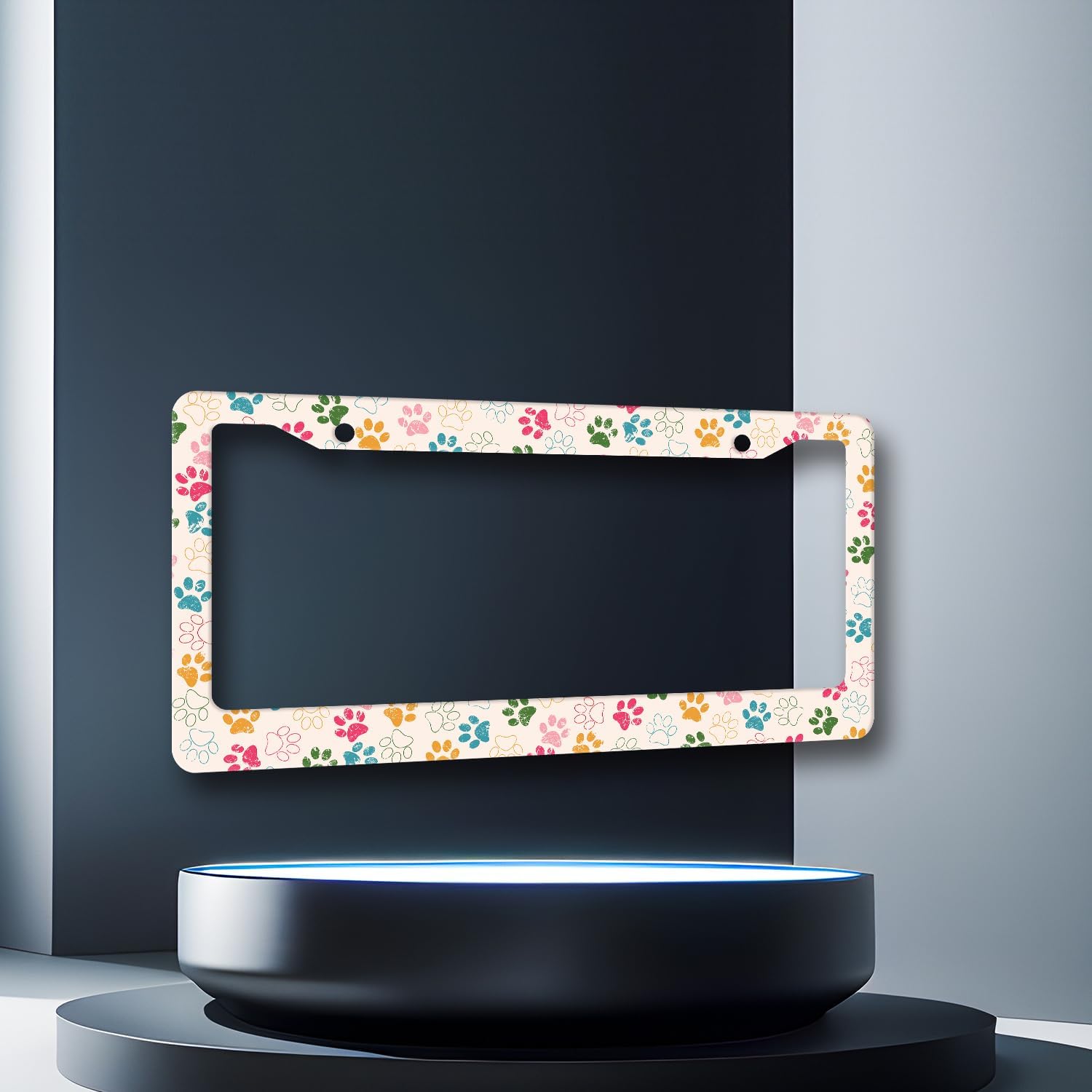 Colorful Dog Paws License Plate Frame Animal Dogs License Plate Holder Stainless Steel Funny Design with 2 Holes and Screws 12.3" x 6.3"