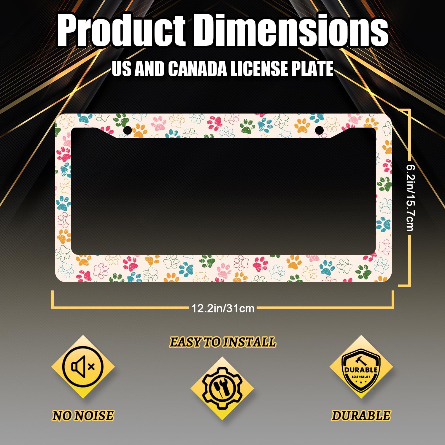 - Size: The size of the license plate frame is 12.3" x 6.3" , it fits all standard size US and Canada vehicle license plates.Fashion design frame fits perfectly on your car license plate.