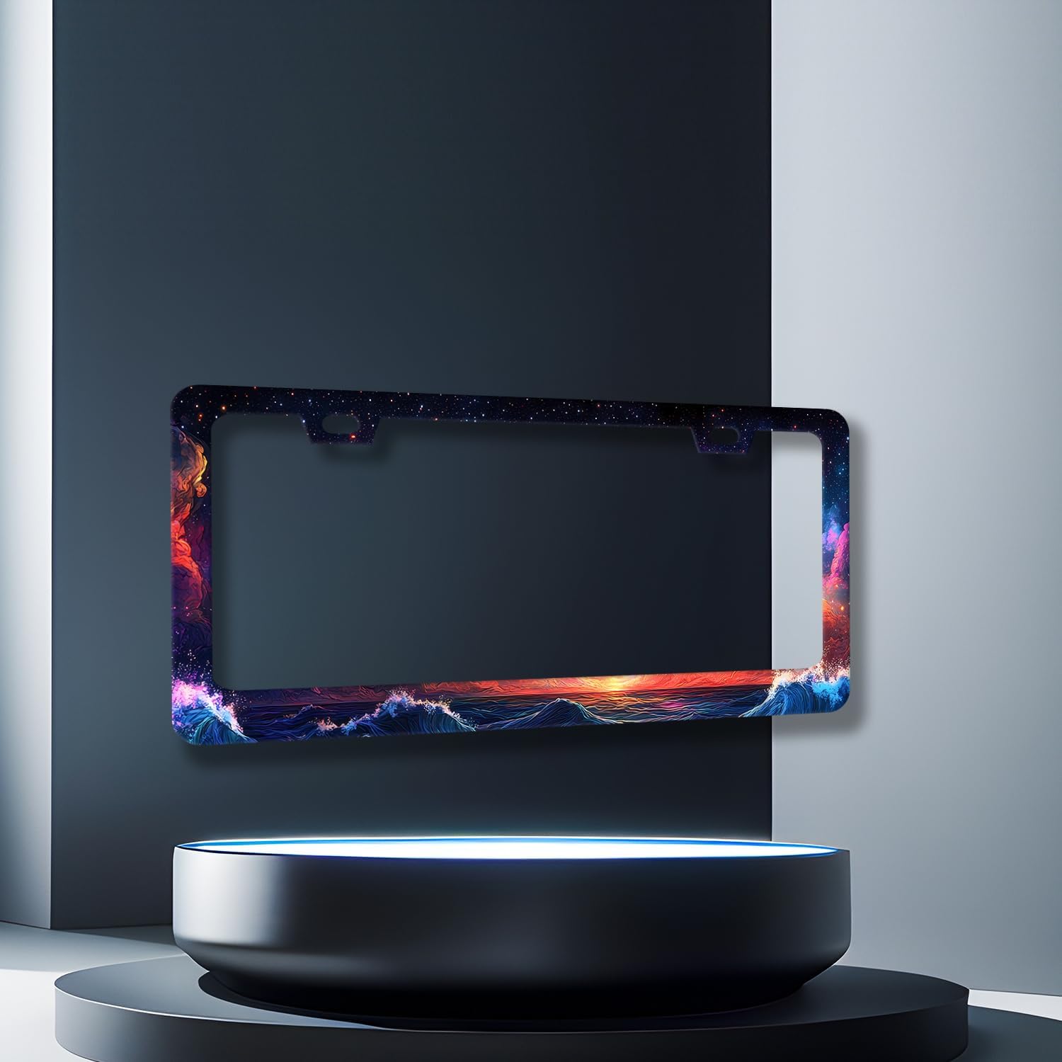 Waves Starry Sky Galaxy License Plate Frame Galaxy License Plate Holder Stainless Steel Funny Colorful Car Accessories Decoration 6.3" X 12.3" with 2 Holes Screws