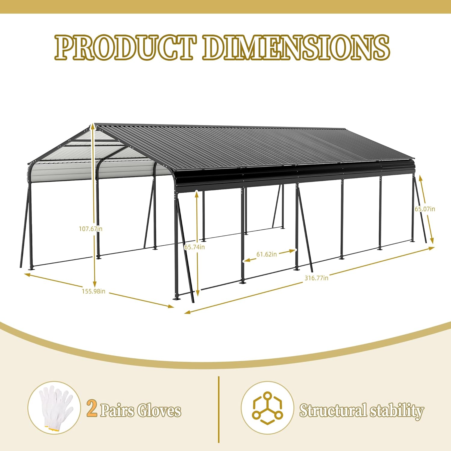 - โ ๐๐ฅ๐ฅโ๐๐๐๐ญ๐ก๐๐ซ ๐๐๐ซ๐ฉ๐จ๐ซ๐ญ: Sized at 13 ร 26.5 ft, this metal carport provides year-round protection for your car, boat, and outdoor gear against wind, rain, and snow. Protruding eaves combined with rainproof tape seal out leaks during heavy downpours. Say goodbye to parking headaches under reliable, all-season heavy duty car ports.