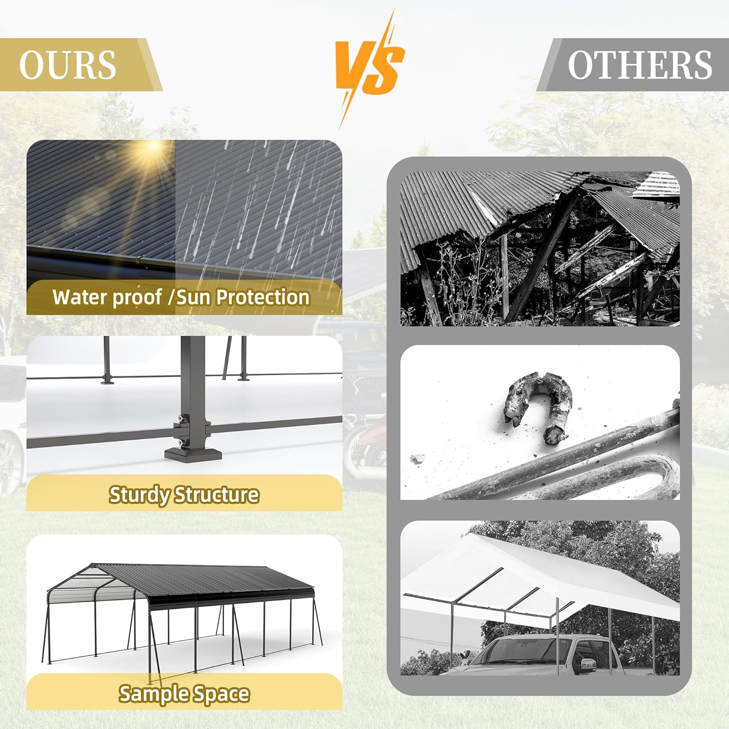 - โ ๐๐๐% ๐๐ฎ๐ฌ๐ญ๐จ๐ฆ๐๐ซ ๐๐๐ญ๐ข๐ฌ๐๐๐๐ญ๐ข๐จ๐ง:We guarantee the quality of our waterproof metal carport with a 12-month warranty and a 30-day return policy for your complete peace of mind. If you have any questions or encounter any issues, please don't hesitate to contact us. Our professional team is here to help and promises to address your concerns within 24 hours