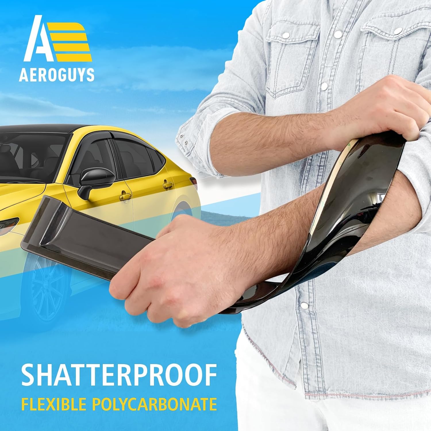 - Incredibly Durable AEROGUYS Auto Window Deflectors – They are made with strong and tough polycarbonate which is clear and scratch-resistant. They also provide UV protection making your ride more comfortable under all weather conditions.