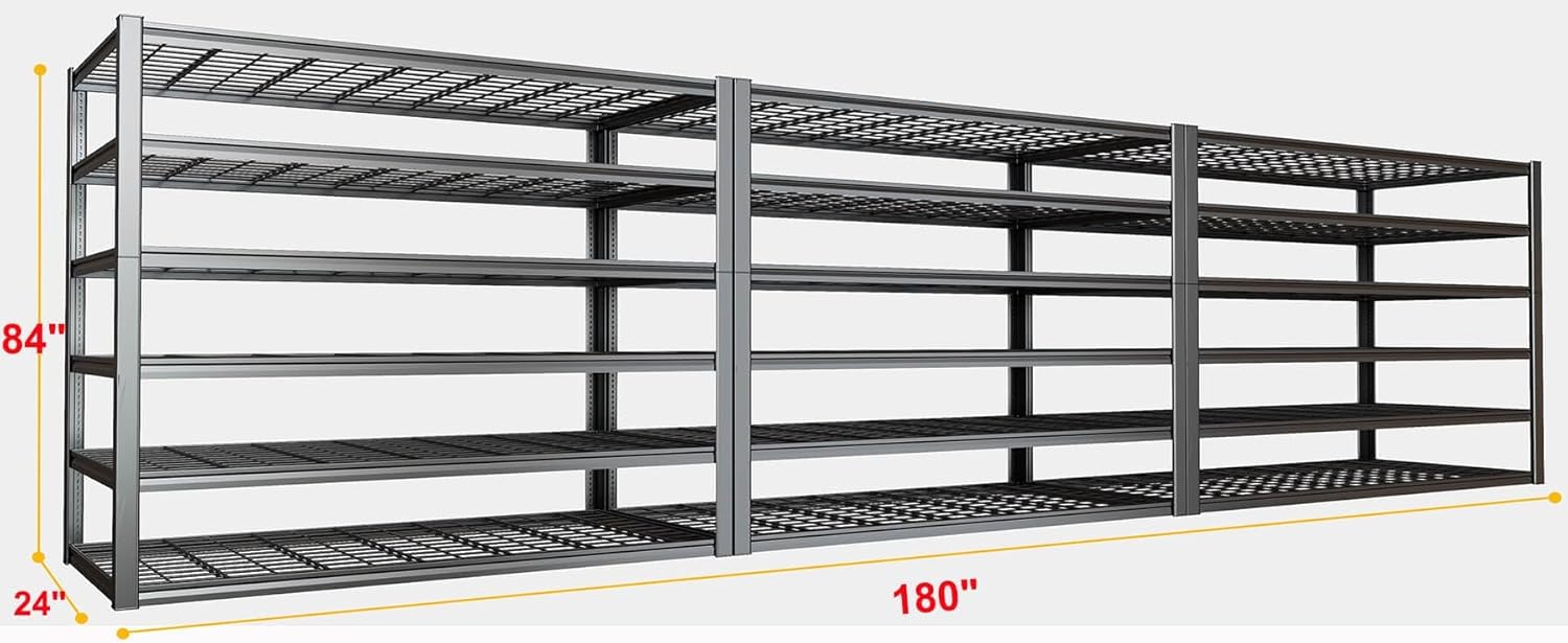 - 【6 Tier 50 "W x 84"H x 24"D Wide Storage Shelves heavy duty】Large heavy duty garage shelving is suitable for garage, warehouse, basement,Library, commerical, industrial etc. The 6 tier metal shelves for storage shelves expands your storage space, makes your home clean .