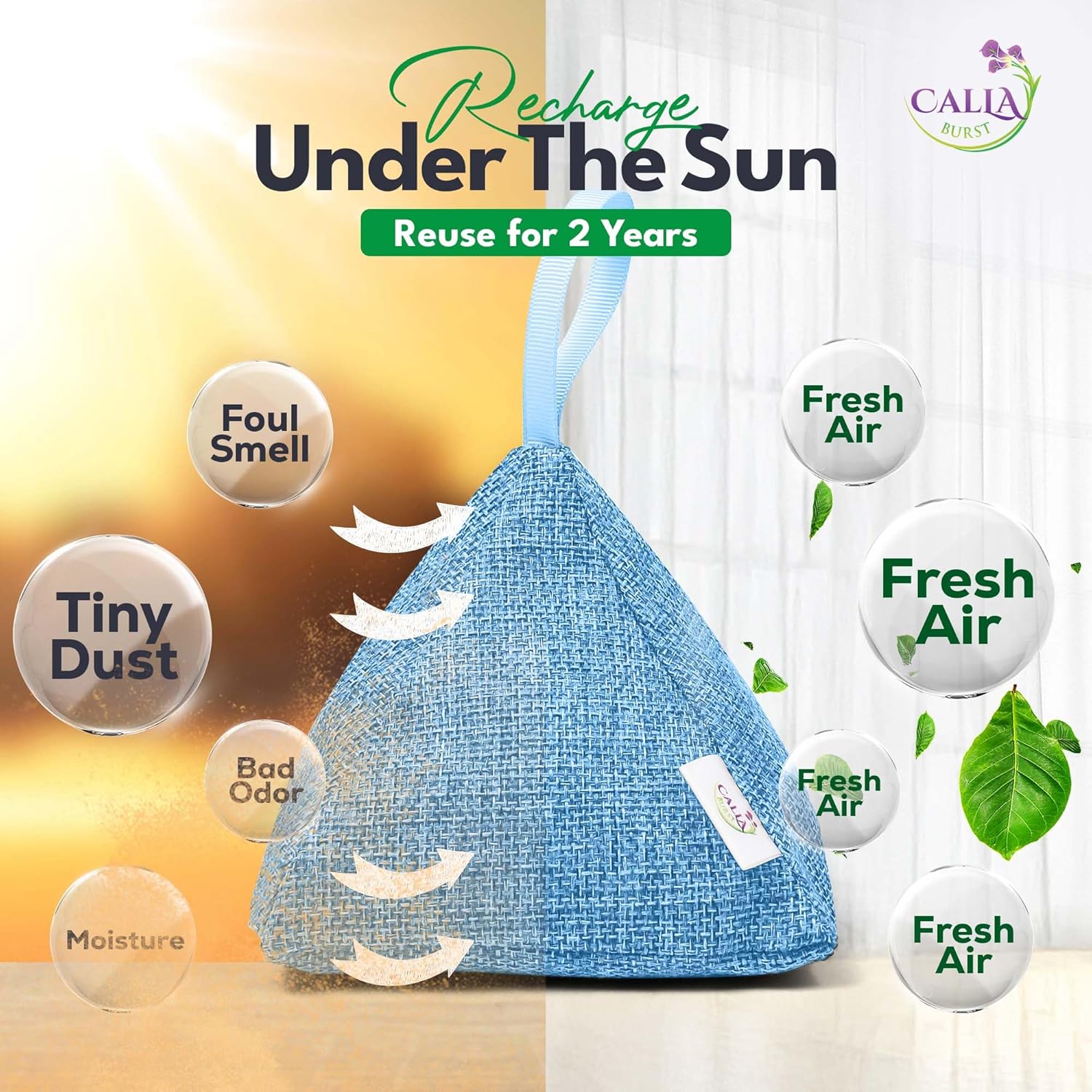 - Sun-Rechargeable Freshness: Revitalize your activated carbon bamboo charcoal bags easily. Expose them to sunlight for just 2 hours monthly, ensuring their effectiveness. These smell absorbers serve as a natural air purifier for up to 2 years
