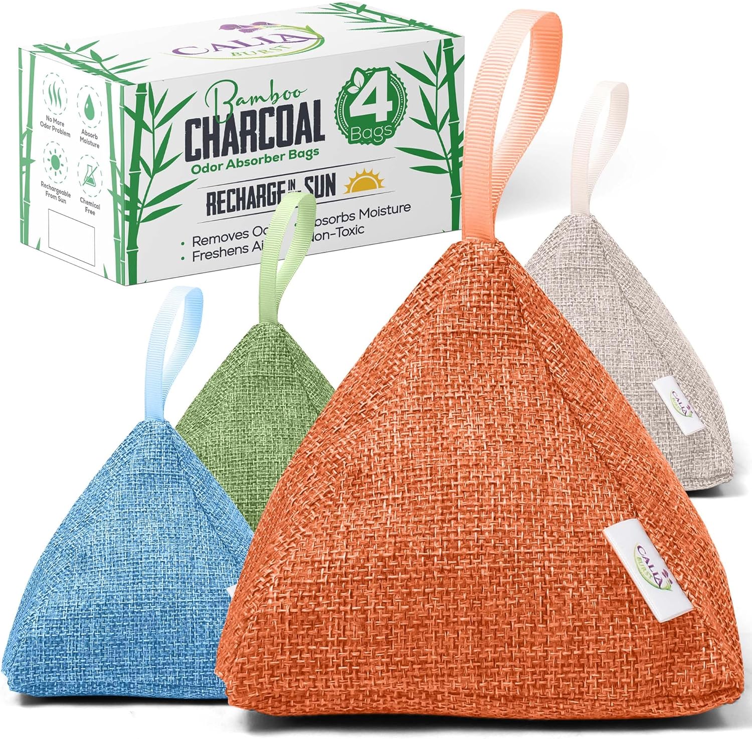 - Stylish and Effective : Discover lasting air freshness with our activated charcoal bags, an elegant charcoal odor absorber. These easy-to-hang 4 unique colored bags neutralize odors and enhance your space's aesthetic.