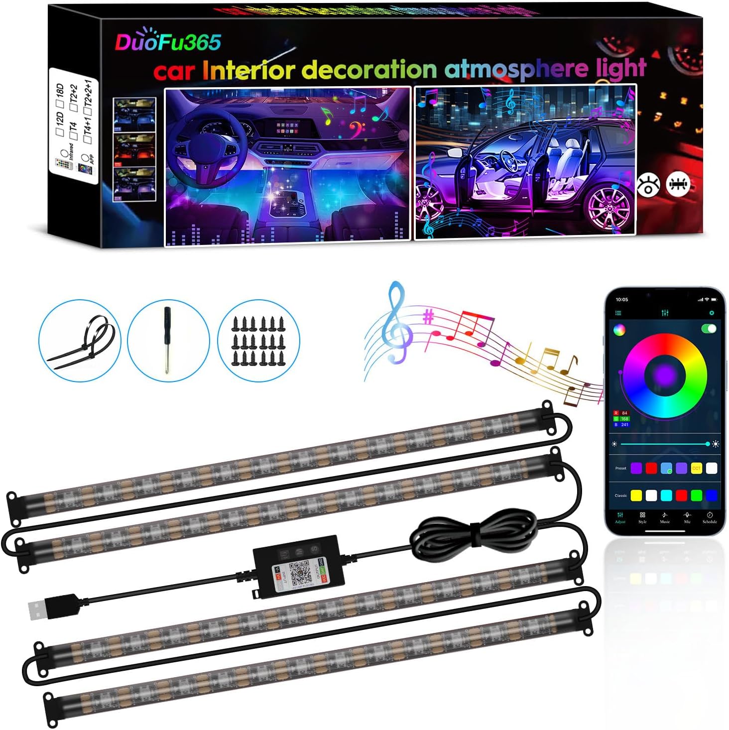 - 【2 Lines Design & Easy to Install】①Unlike traditional 4 lines, our light strips are 2 lines connecting 4 strip lights. Easier for you to set up and hide lines. Always keep your car clean and tidy.② 3 installation methods including double-sided tape fixing, cable tie fixing, and screw fixing, which can make the car light more firm, stable and not easy to fall.