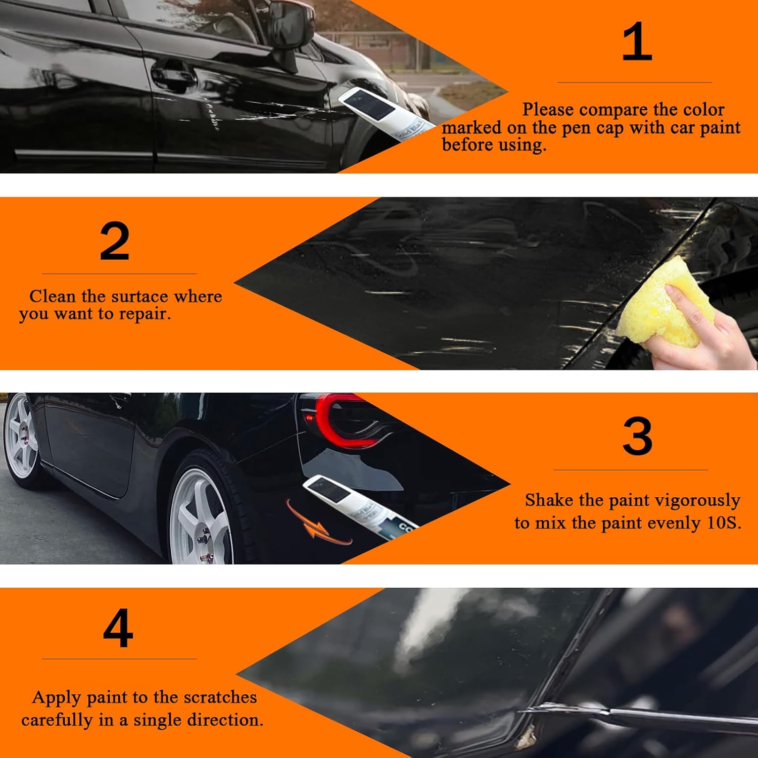 - 【Repair scratches quickly and simply】This car scratch repair paint has strong adhesion, anti-rust, and waterproof properties that protect your car's surface from further damage. With a 2-in-1 uses design, each bottle of car paint comes with a pen pin and brush, ensuring a hassle-free application