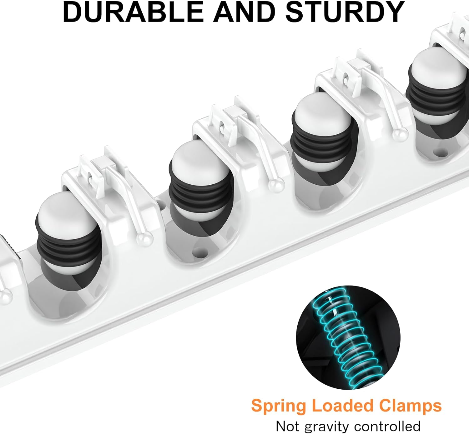 - EASY TO USE: 6 foldable and extremely sturdy hooks with unique hook edge design, easy to hang without slipping or falling. Spring slots facilitate quick access to tools, providing a convenient broom and mop wall hanging solution. Keep your equipment organized and within reach
