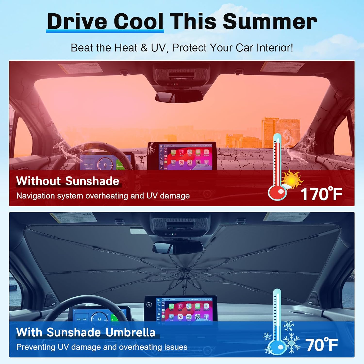 - 3. Enhanced Durability and Stability: Our 2024 2025 Prologue Windshield Umbrella uses 10 glass fiber ribs for high strength, heat resistance, and anti-rust performance. Silicone strips withstand 200°C, ensuring durable shade and interior protection