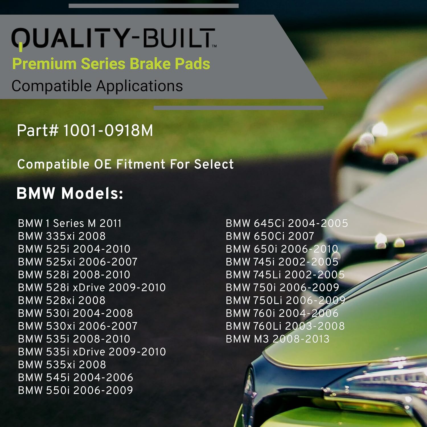 Premium Semi-Metallic Front Brake Pads (1001-0918M) Compatible with 2002-2013 BMW (1 Series M/335xi/525i/525xi/528i/528i xDrive/528xi/530i/530xi/535i/535i xDrive/535xi/545i/550i/M3)