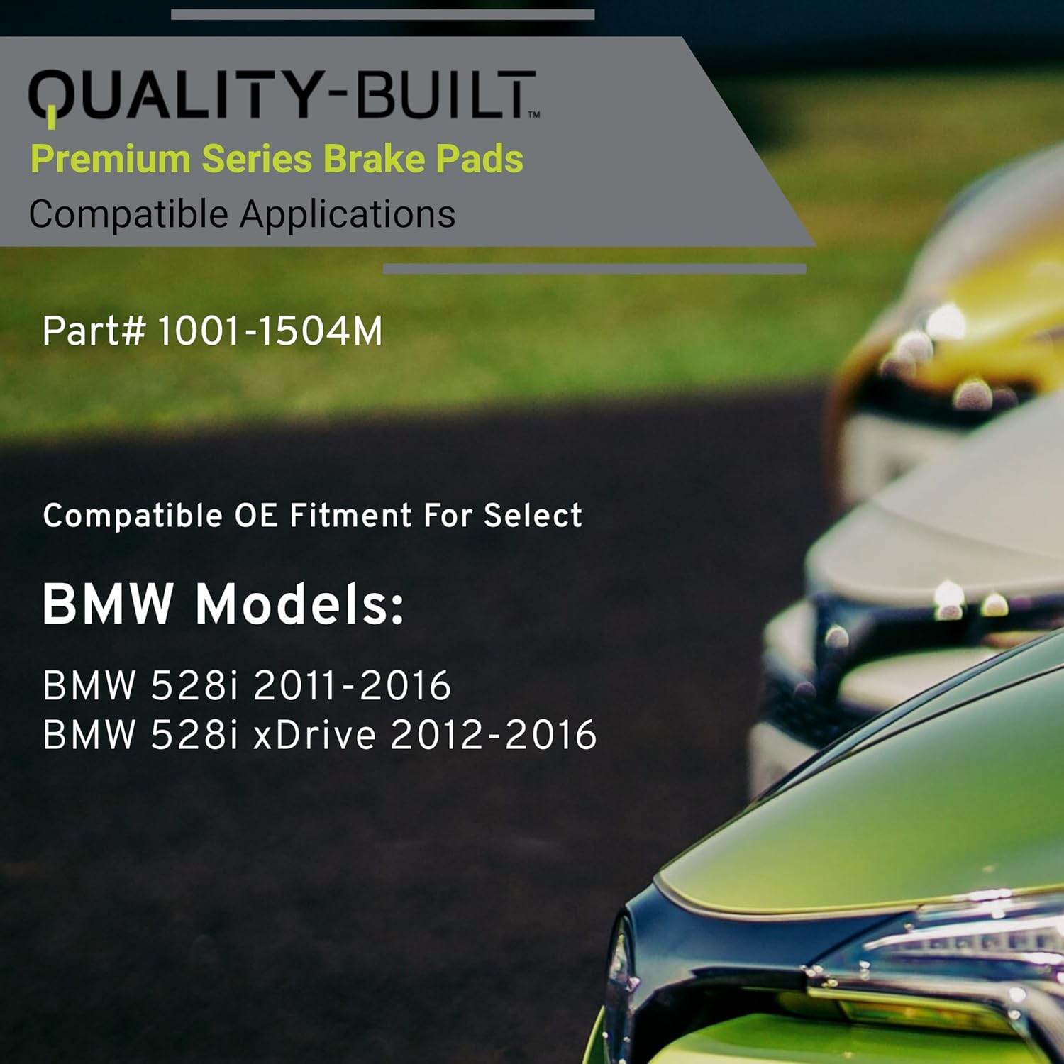 Premium Semi-Metallic Front Brake Pads (1001-1504M) Compatible with BMW 528i 2011-2016, BMW 528i xDrive 2012-2016