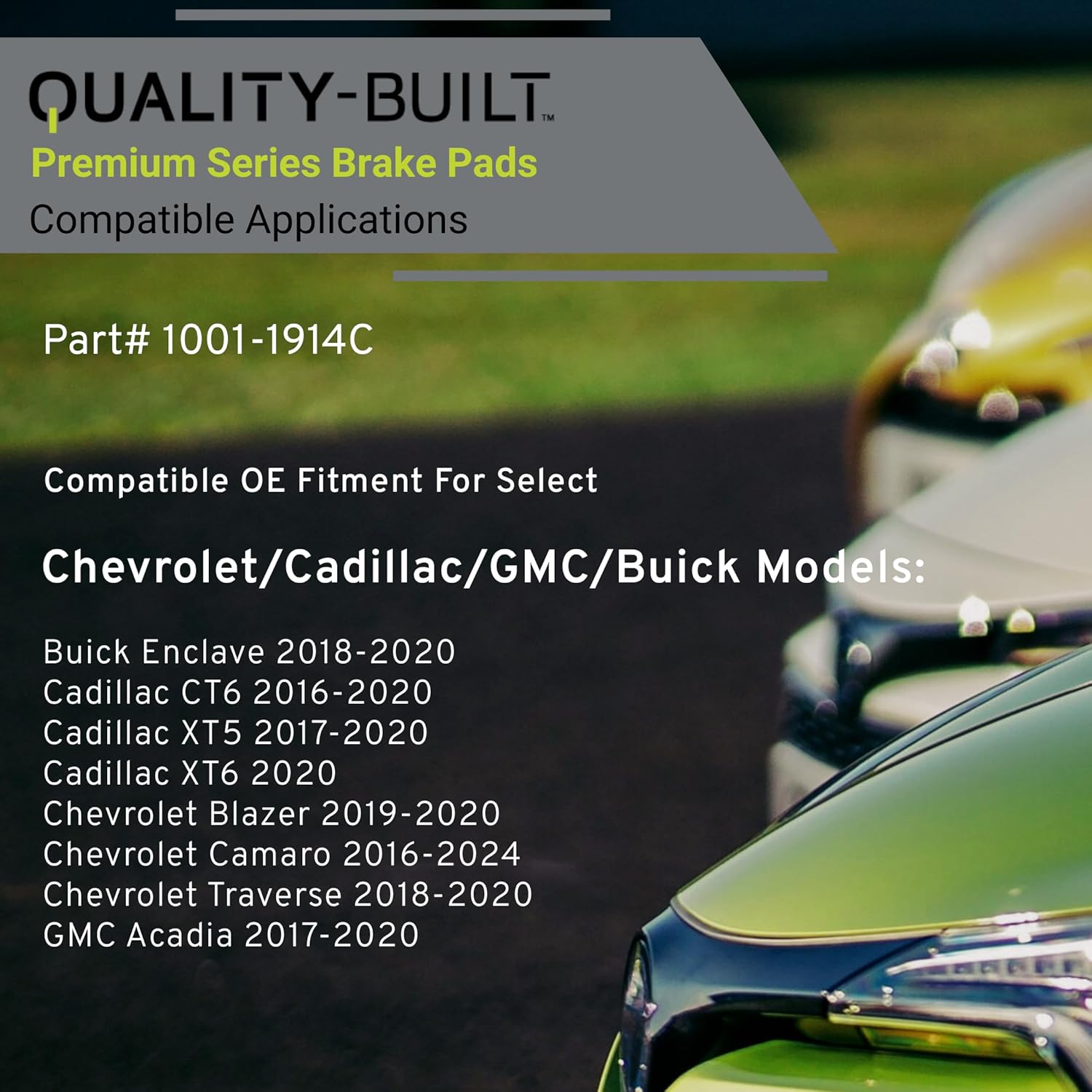 Premium Ceramic Rear Brake Pads (1001-1914C) Compatible with 2016-2024 Buick/Cadillac/Chevrolet/GMC (Acadia/Blazer/Camaro/CT6/Enclave/Traverse/XT5/XT6)