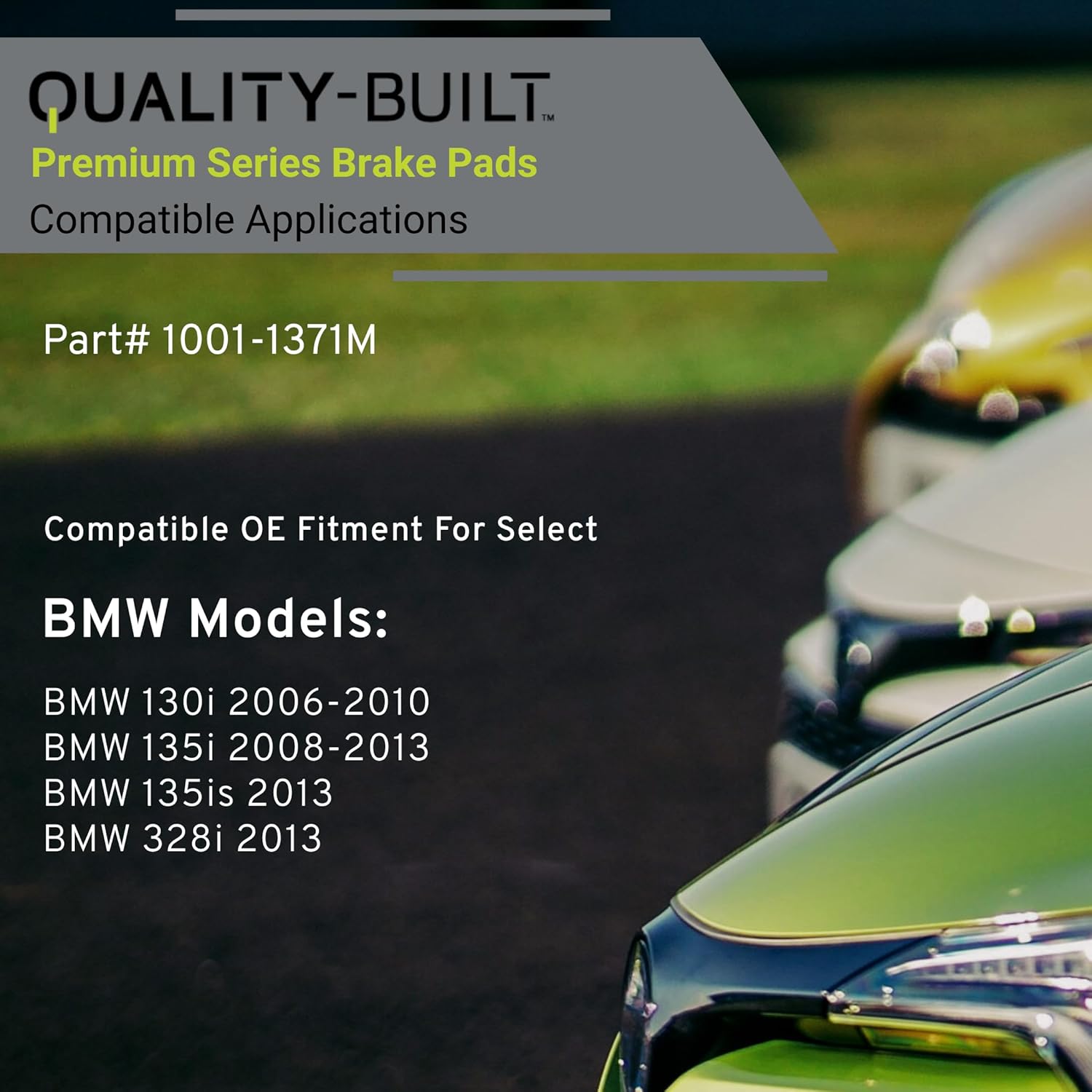 Premium Semi-Metallic Front Brake Pads (1001-1371M) Replacement for BMW 130i 2010-2006, 135i 2013-2008, 135is 2013, 328i 2013