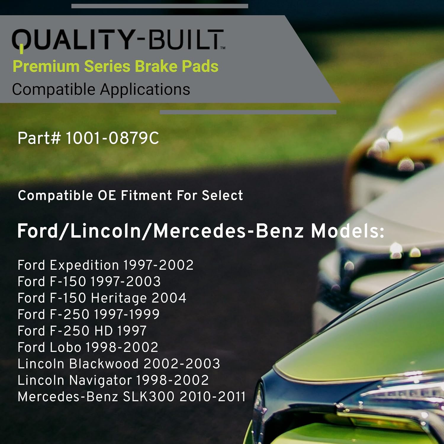 Premium Ceramic Rear Brake Pads (1001-0879C) Compatible with 1997-2011 Ford/Lincoln/Mercedes-Benz (Blackwood/Expedition/F-150/F-150 Heritage/F-250/F-250 HD/Lobo/Navigator/SLK300)
