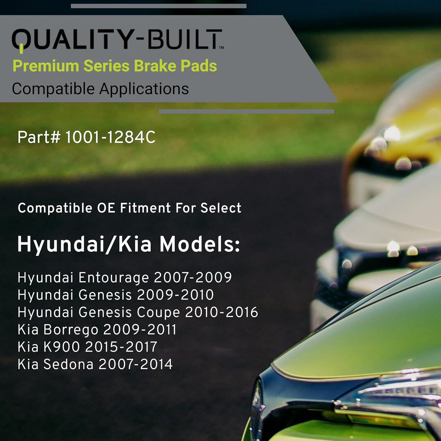 - VEHICLE FITMENT LIST: Hyundai Entourage 2009-2007, Genesis 2010-2009, Genesis Coupe 2016-2010, Kia Borrego 2011-2009, K900 2017-2015, Sedona 2012-2007, Sedona 2014 (PART#1001-1284C)