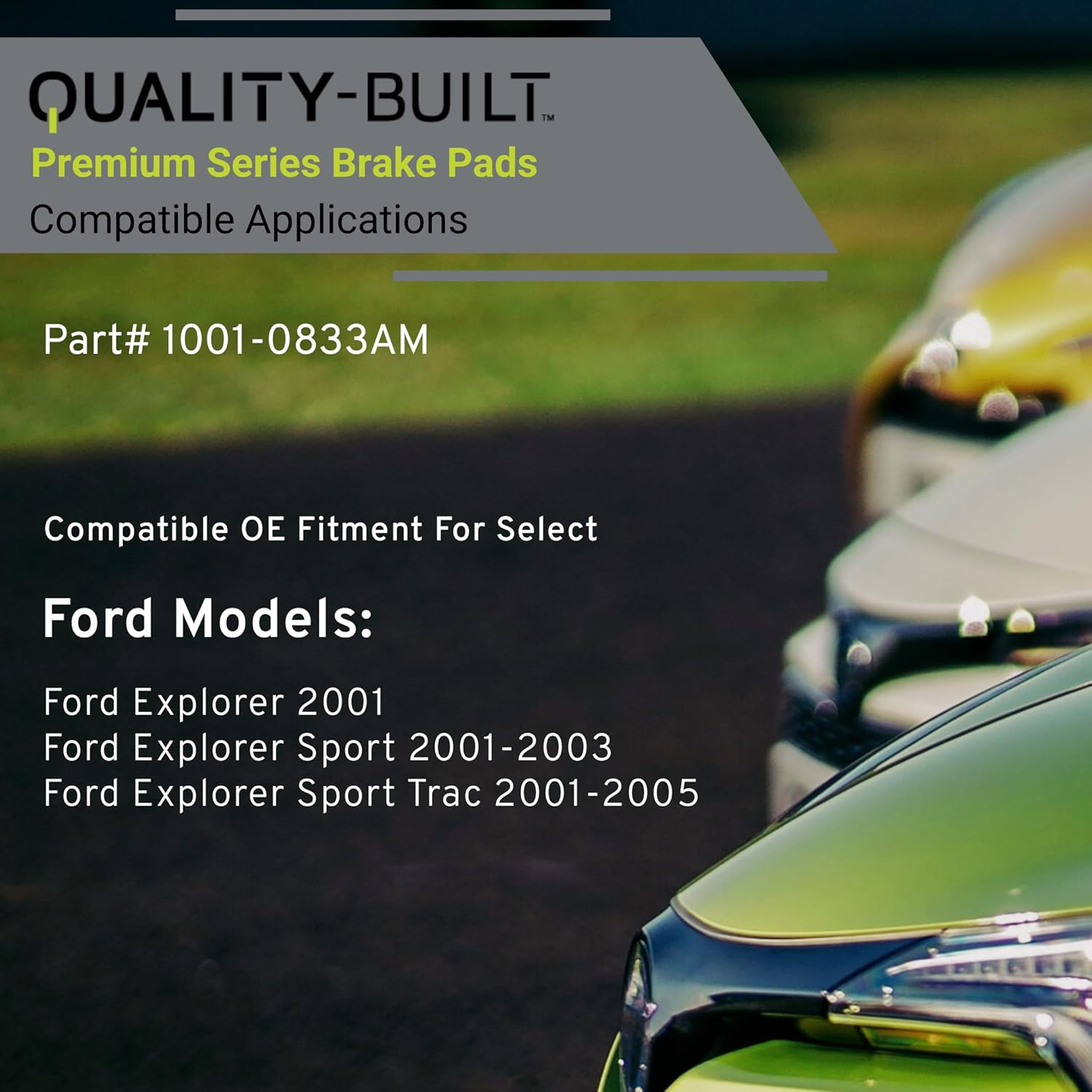 Premium Semi-Metallic Front Brake Pads (1001-0833AM) Compatible with Ford Explorer 2001-2001, Ford Explorer Sport 2001-2003, Ford Explorer Sport Trac 2001-2005