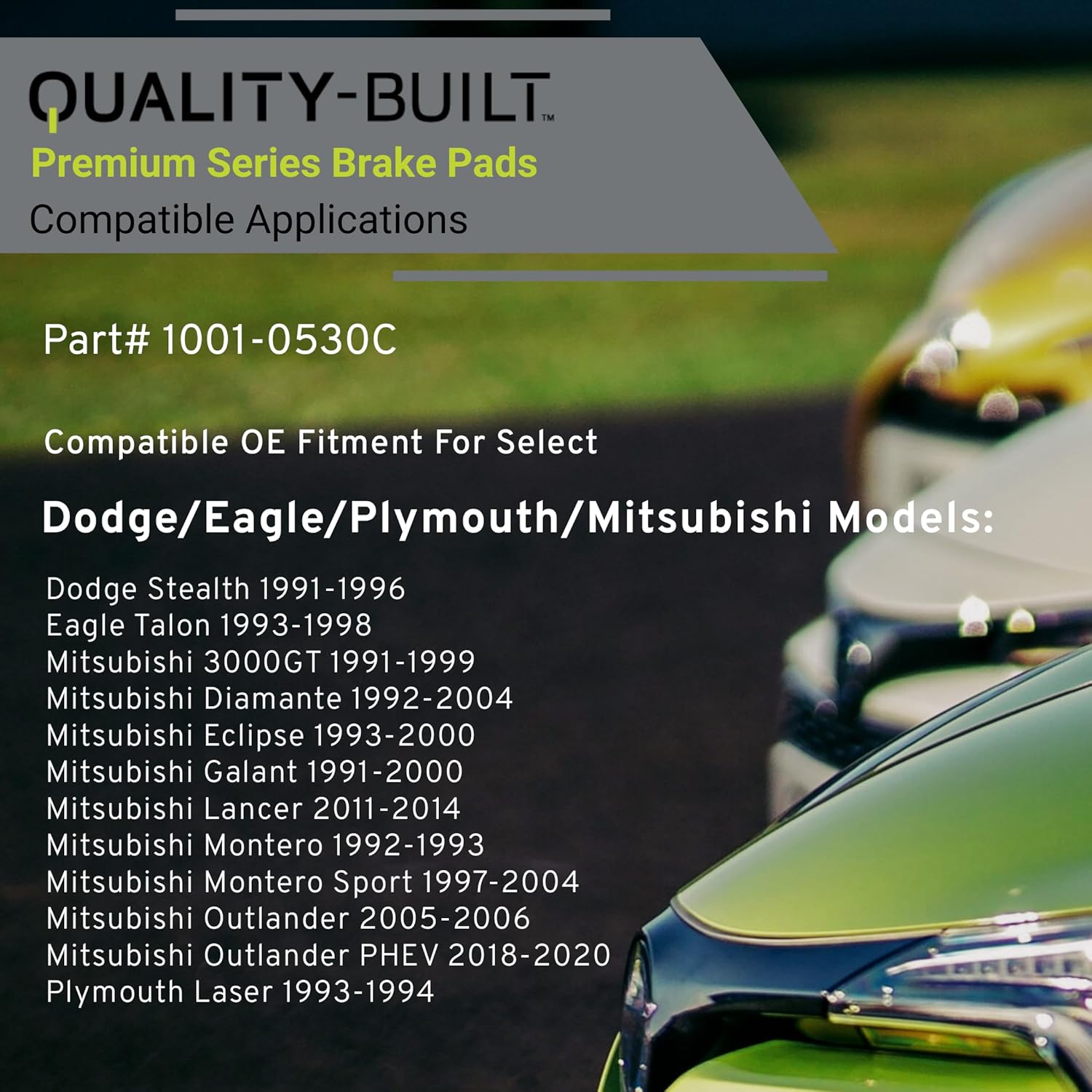 Premium Ceramic Front Brake Pads (1001-0530C) Compatible with 1991-2020 Dodge/Eagle/Mitsubishi/Plymouth (3000GT/Diamante/Eclipse/Galant/Lancer/Laser/Montero/Montero Sport/Outlander)
