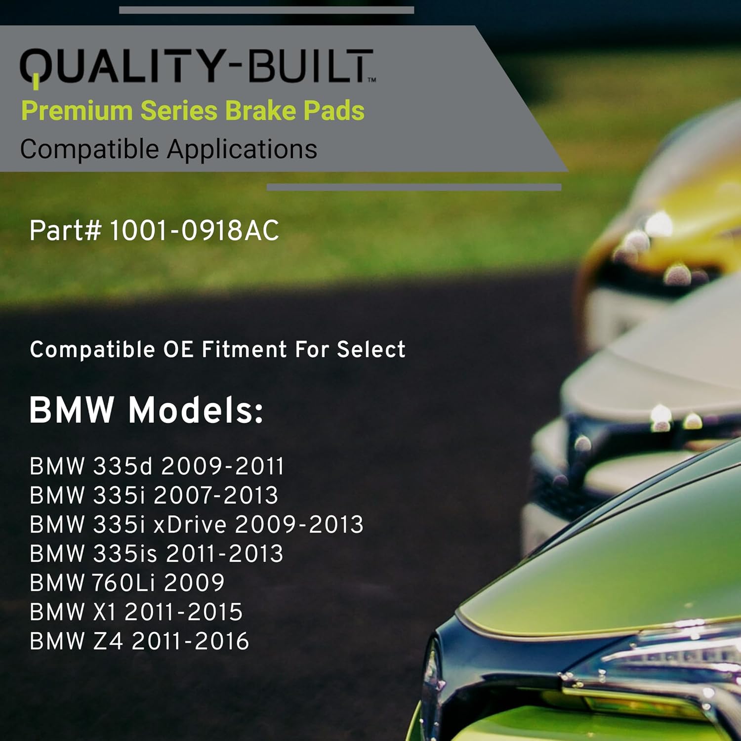 Premium Ceramic Front Brake Pads (1001-0918AC) Compatible with BMW 335d 2011-2009, 335i 2013-2007, 335is 2013-2011, 335i xDrive 2013-2009, 760Li 2009, X1 2011, X1 2015-2013, Z4 2016-2011