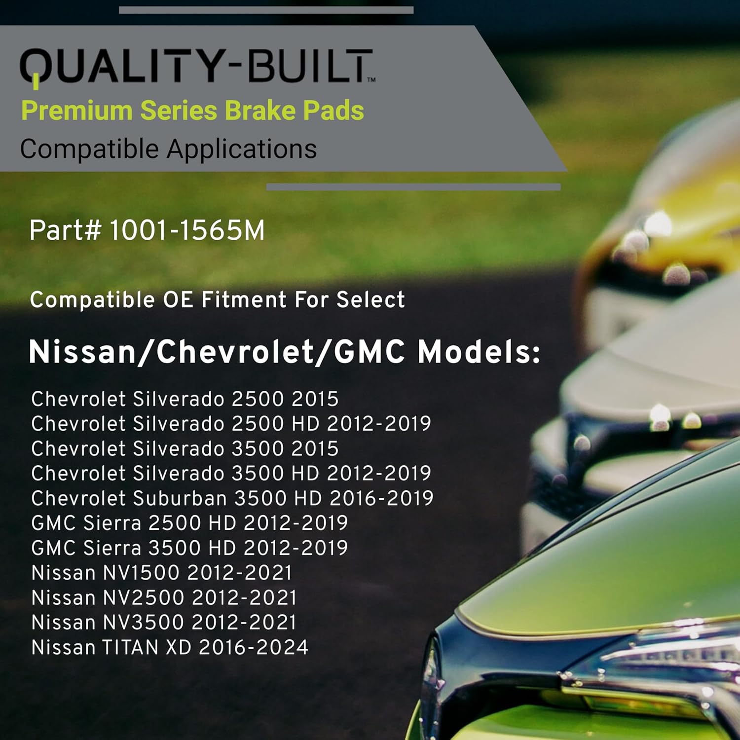 Premium Semi-Metallic Front Brake Pads (1001-1565M) Compatible with 2012-2024 Chevrolet/GMC/Nissan (NV1500/NV2500/NV3500/Sierra 2500 HD/Sierra 3500 HD/Silverado 2500 & More)