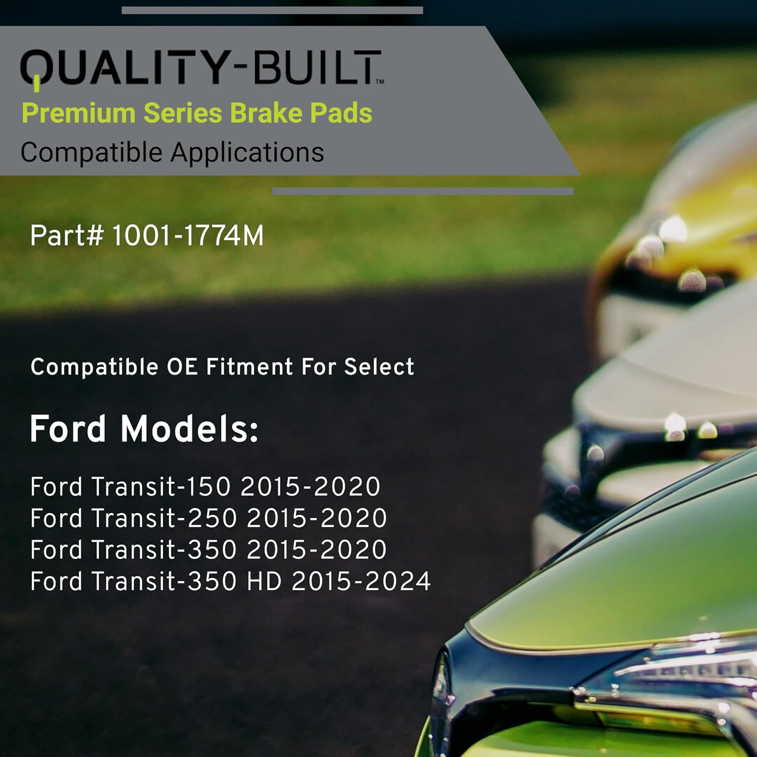 Premium Semi-Metallic Front Brake Pads (1001-1774M) Compatible with Ford Transit-150 2015-2020, Ford Transit-250 2015-2020, Ford Transit-350 2015-2020, Ford Transit-350 HD 2015-2024