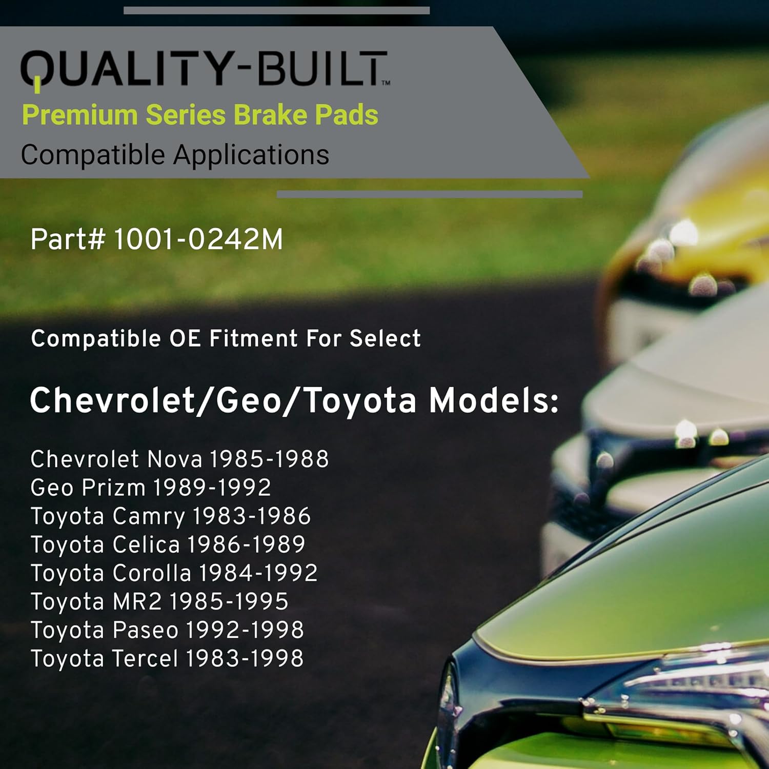 Premium Semi-Metallic Front Brake Pads (1001-0242M) Compatible with 1983-1998 Chevrolet/Geo/Toyota (Camry/Celica/Corolla/MR2/Nova/Paseo/Prizm/Tercel)