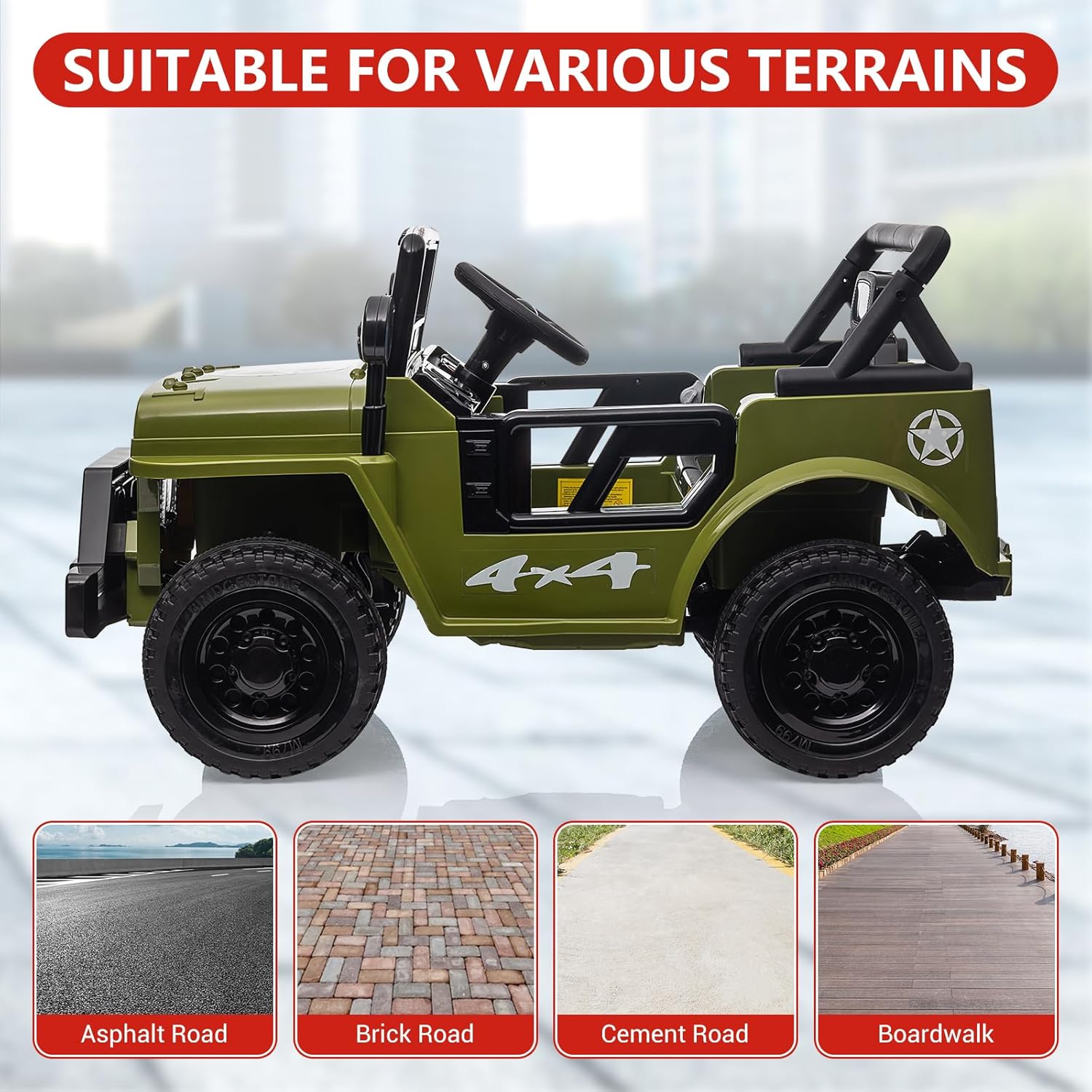 - 2. 12V All-Terrain Performance: Dual 25W motors and 4.5Ah battery deliver 1-2 hours of runtime. Conquers 15° inclines across grass/gravel with 3.7mph (6km/h) max speed.
