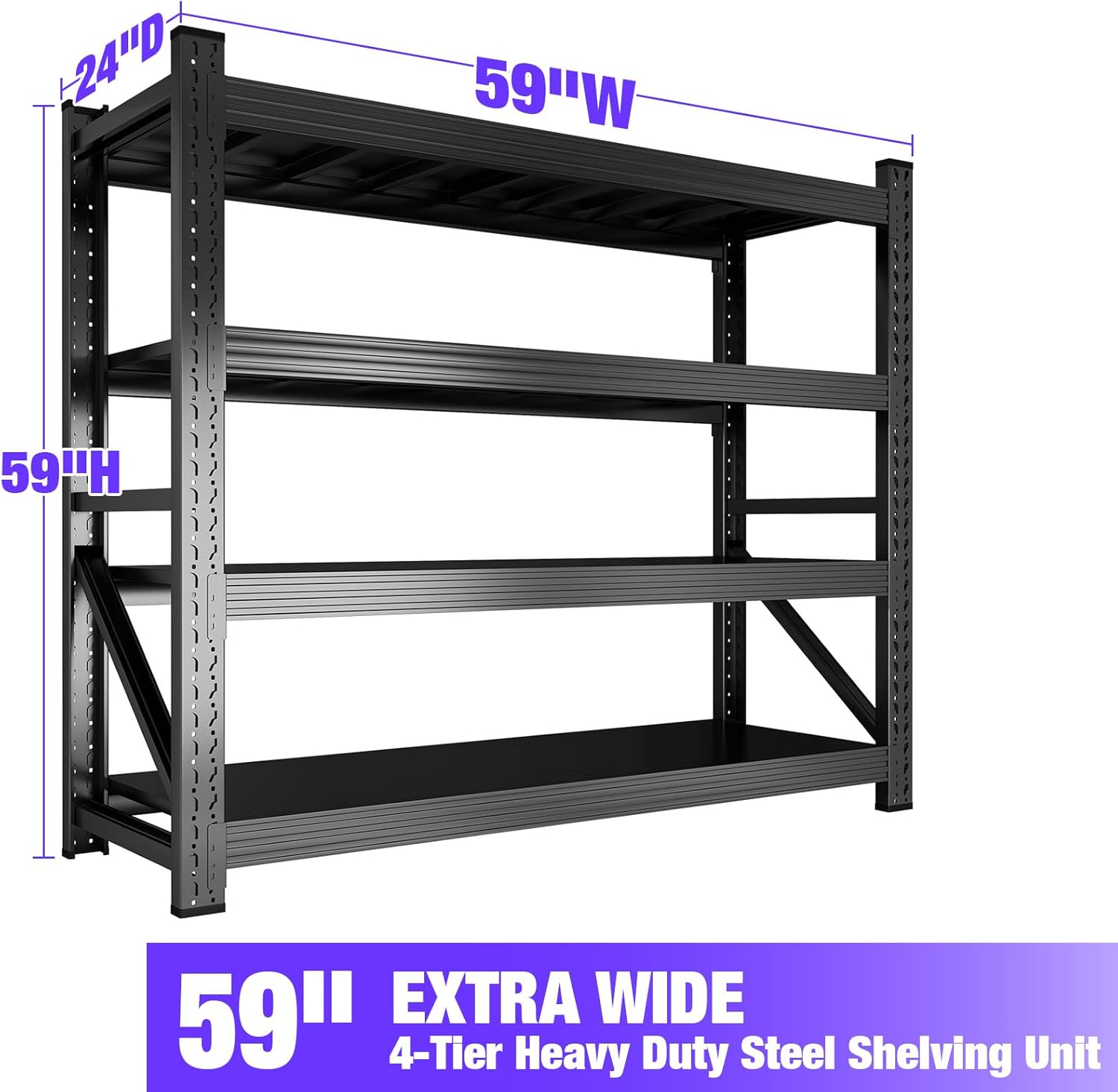 Metal Garage Shelving Heavy Duty, 4-Tier Adjustable Wire Storage Garage Shelves, 6000 LBS Loads Industrial Shelving Units for Garages, Warehouses, Kitchen, Black, 59" W x 24" D x 59" H,4 Pack