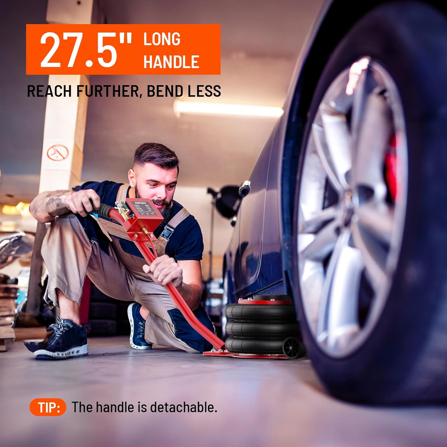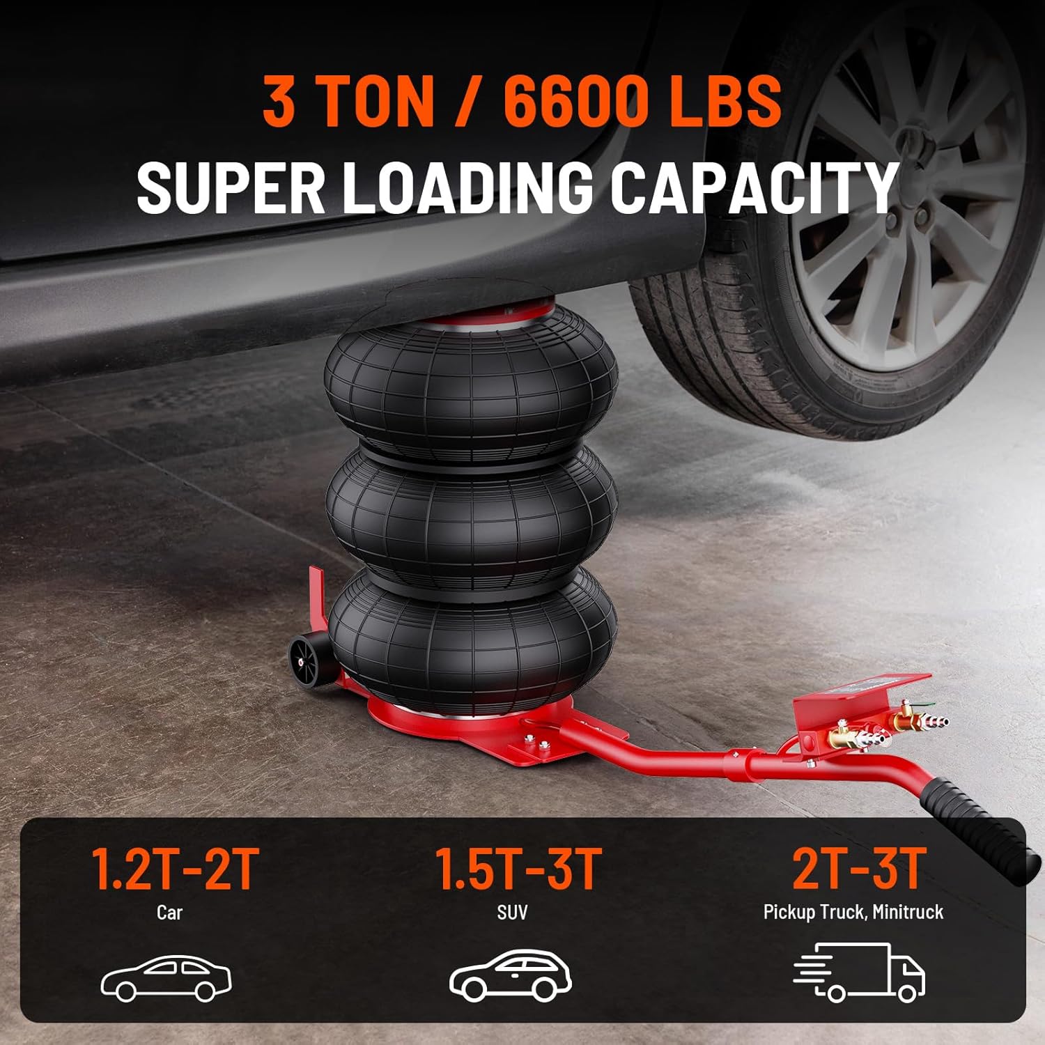 - 6600 lbs Load Capacity: This powerful 3 Ton (6600 lbs) air bag jack effortlessly handles a wide range of vehicles, from family cars and pickups to SUVs. Perfect for both home and commercial use, it’s your go-to tool for heavy-duty lifting.