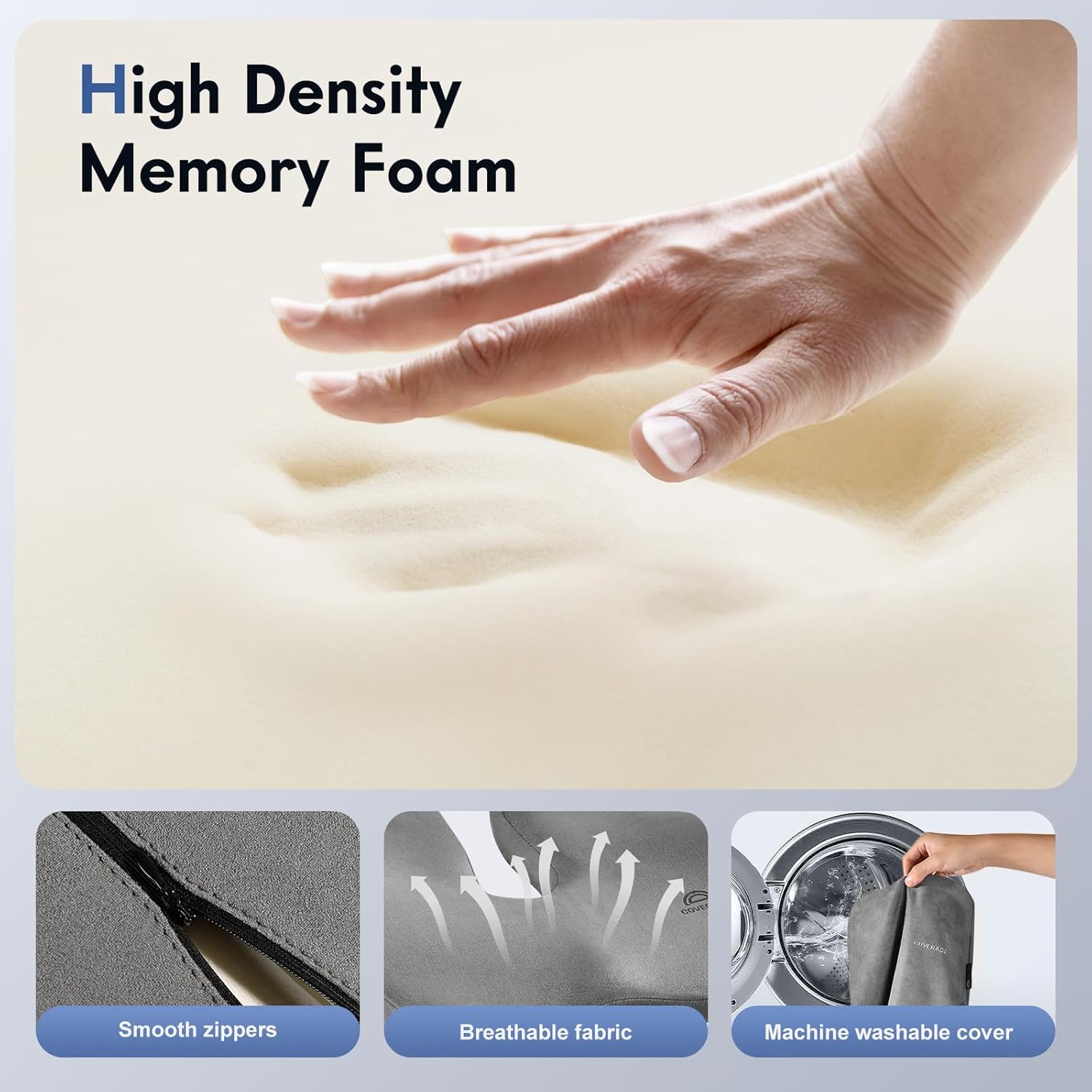 Coverado Memory Foam Car Seat Cushion and Lumbar Support Pillow for Car, Ergonomic Office Chair Cushion for Lower Back Pain Relief, Breathable & Non-Slip for Car, Home, and Office Use, Gray