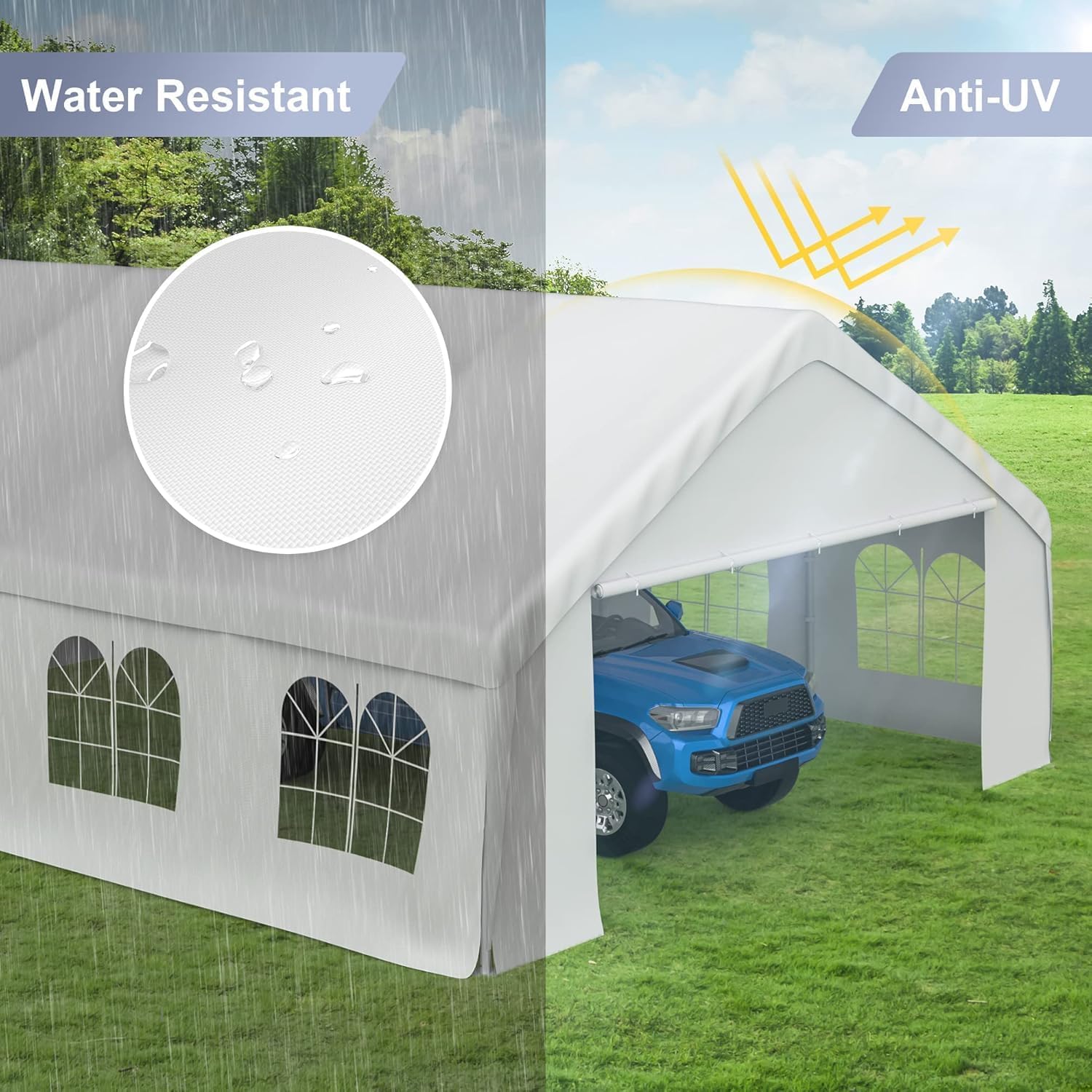 Morngardo 20'x26' Carports Clearance, Large Canopy Tent for Parties Heavy Duty Car Tent Metal Carport Portable Garage with Removable Sidewalls, White
