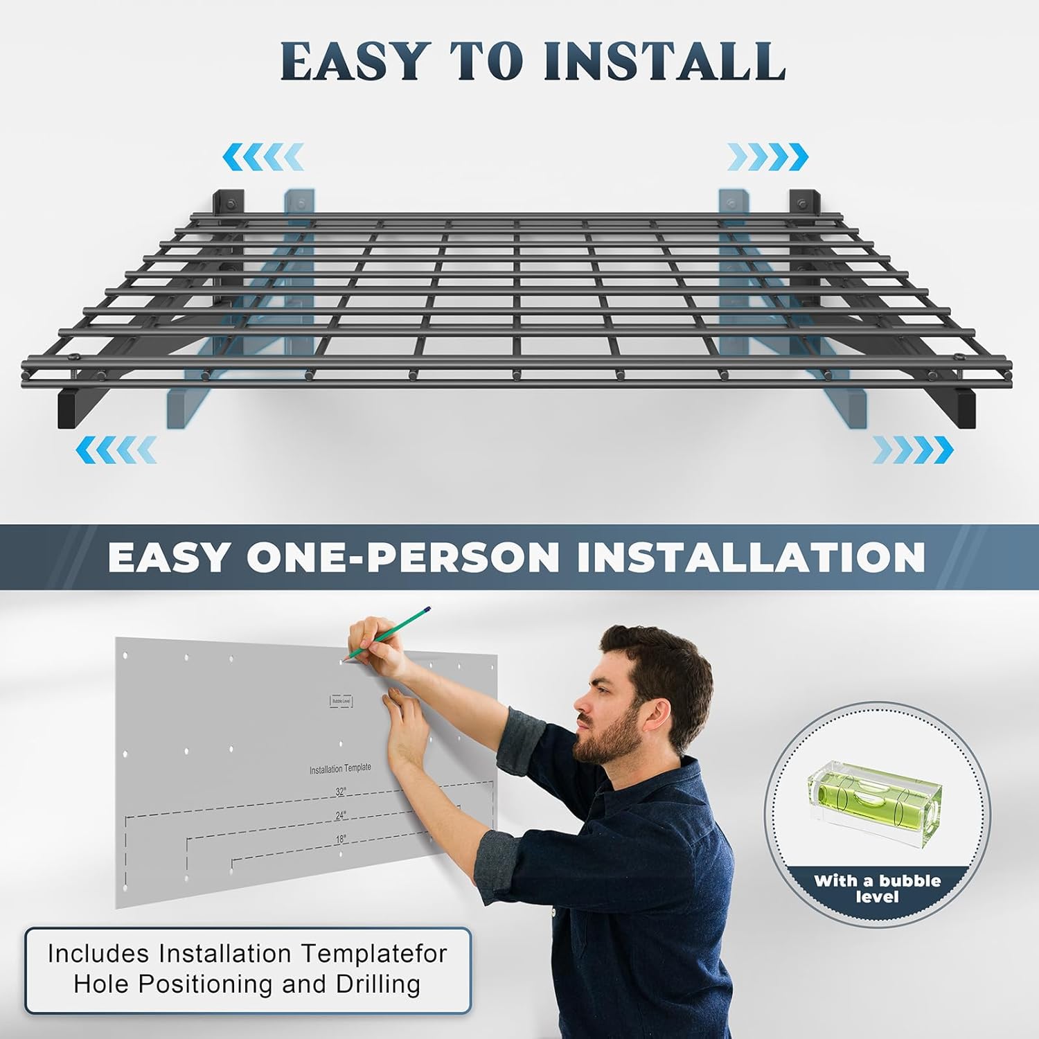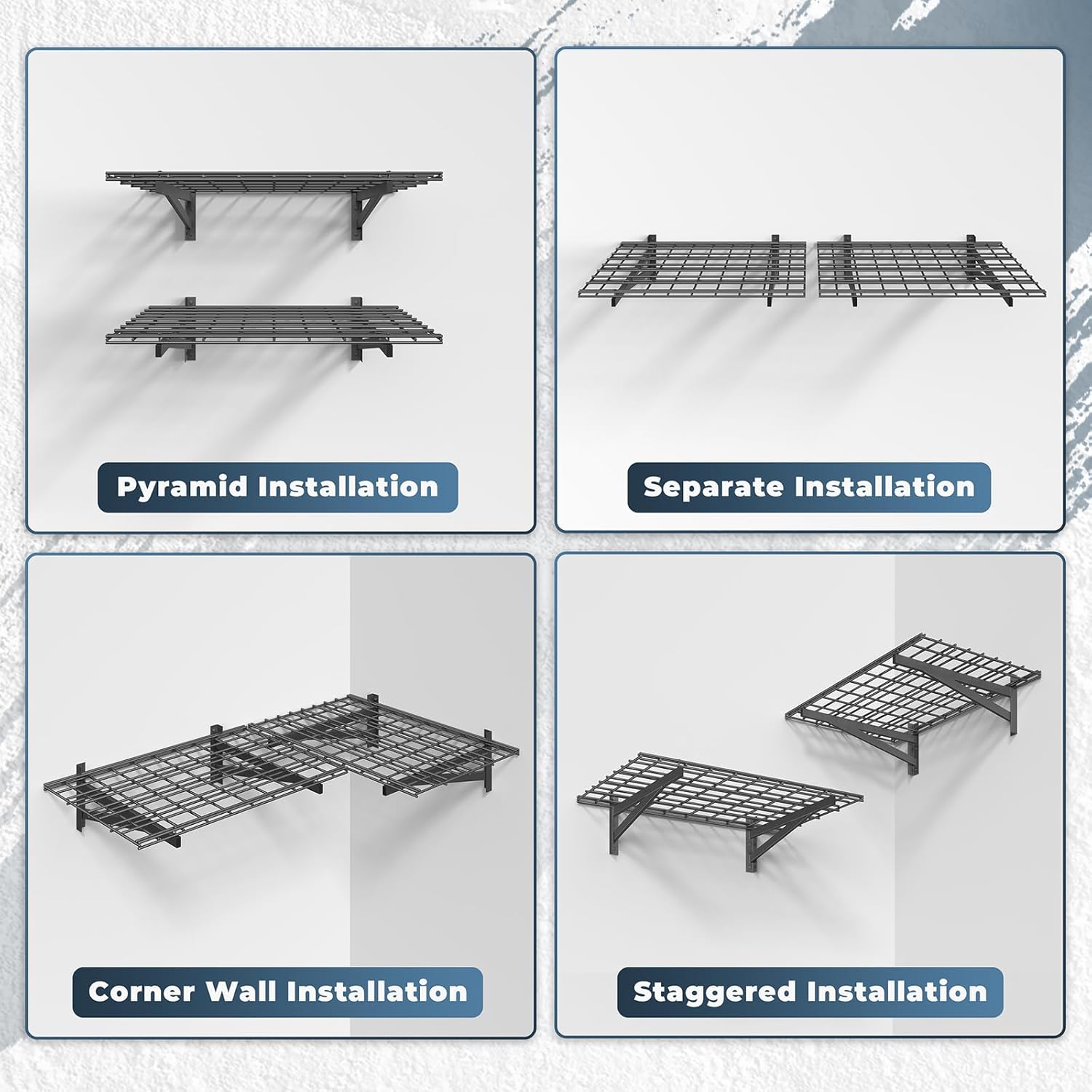- đŚăAll-in-One Mesh Storageă- The seamless welded mesh design securely holds tires, sports gear, toolboxes, and plastic bins without sagging. Open-grid airflow prevents dust buildup, while the anti-rust coating ensures durability in humid garage environments.