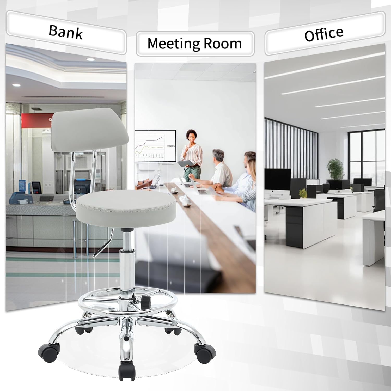 Drafting Stool (Height Adjustable Office Chair with Footrest 19.5’’-26.6’’)(Drum Stool with Back) Space Saving Tattoo Chair (Gray)