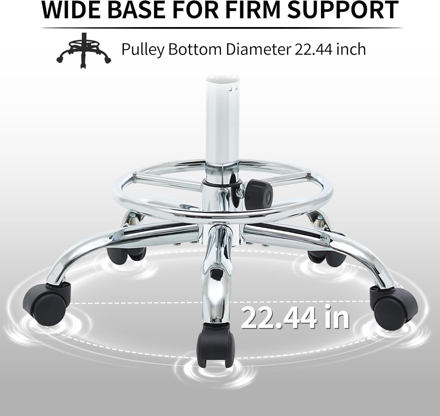 - Metal Frame Legs, Footrest and 360° Swivel Wheels: The ergonomic stool is made of sturdy, durable metal frame legs and footrest, while the smooth 360° swivel wheels allow effortless gliding across floors