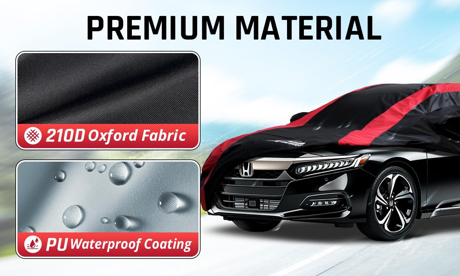 Honda Accord Car Cover Waterproof All Weather with Red Strip Design, Custom Fit for Honda Accord 1998–2025, Accord Accessory with Door Zipper & Windproof Straps