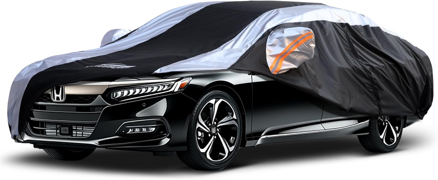 Honda Accord Car Cover Waterproof All Weather with Silver Strip Design, Custom Fit for Honda Accord 2005–2025, Accord Accessory with Door Zipper & Windproof Straps