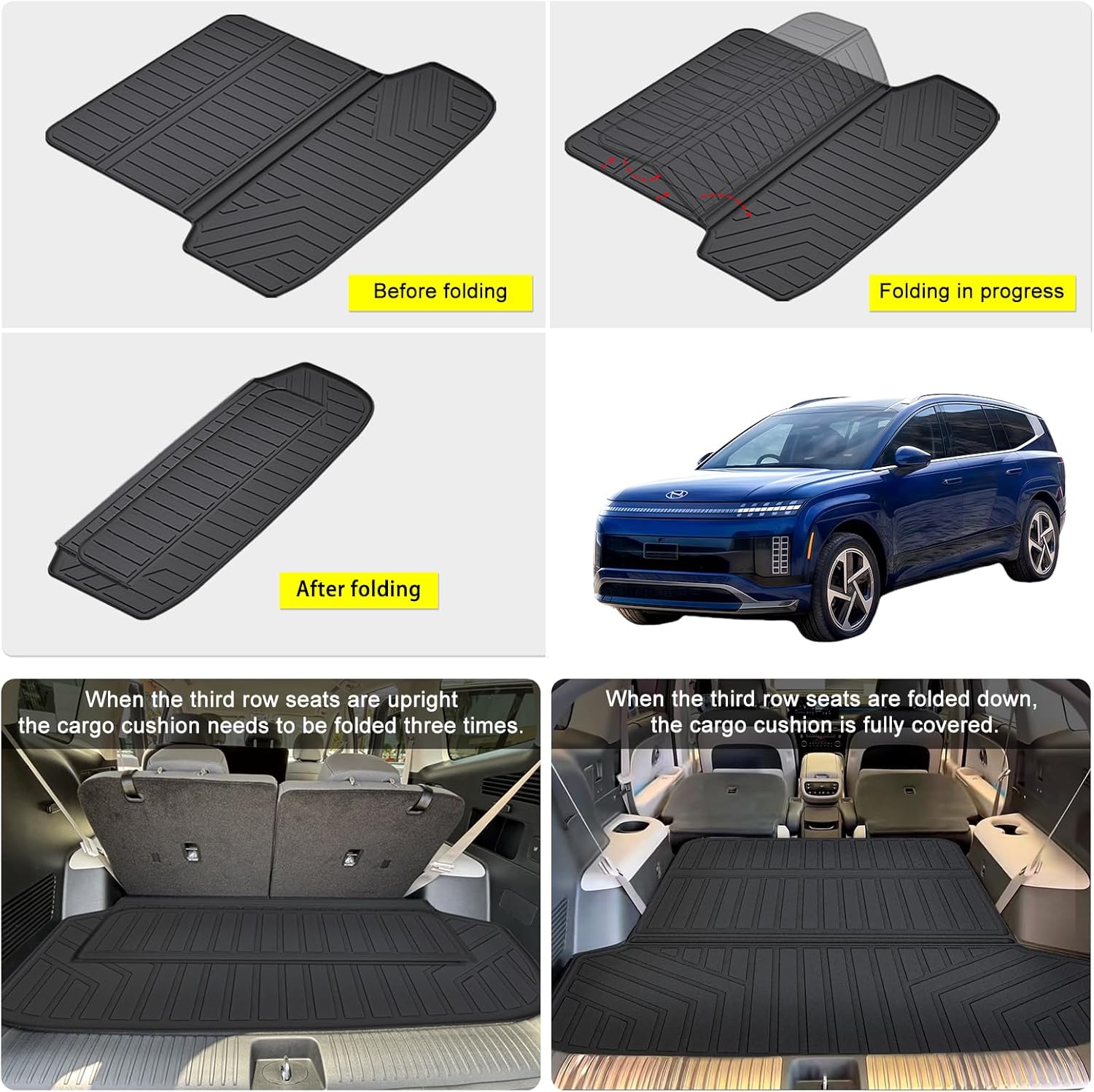 - 【🚗Custom Fit for 2026 Hyundai Ioniq 9】Large Cargo mat(Foldable)The WAYIDSS floor mats is high-precision laser measured, which means that our customized fit will provide the best coverage range, looking like the mat included with your car.