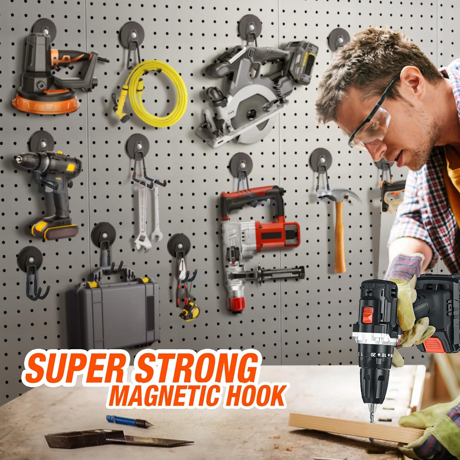 - 🧲[4 Pack Magnetic Hooks For Hanging] Large strong magnetic hook present an efficient solution for optimizing vertical storage space within your garage organization system. These multifunctional extra magnet storage hooks are suitable for both indoor and outdoor settings, including garages, gardens, kitchen, warehouse, cruise cabin, utility rooms and indoor/outdoor