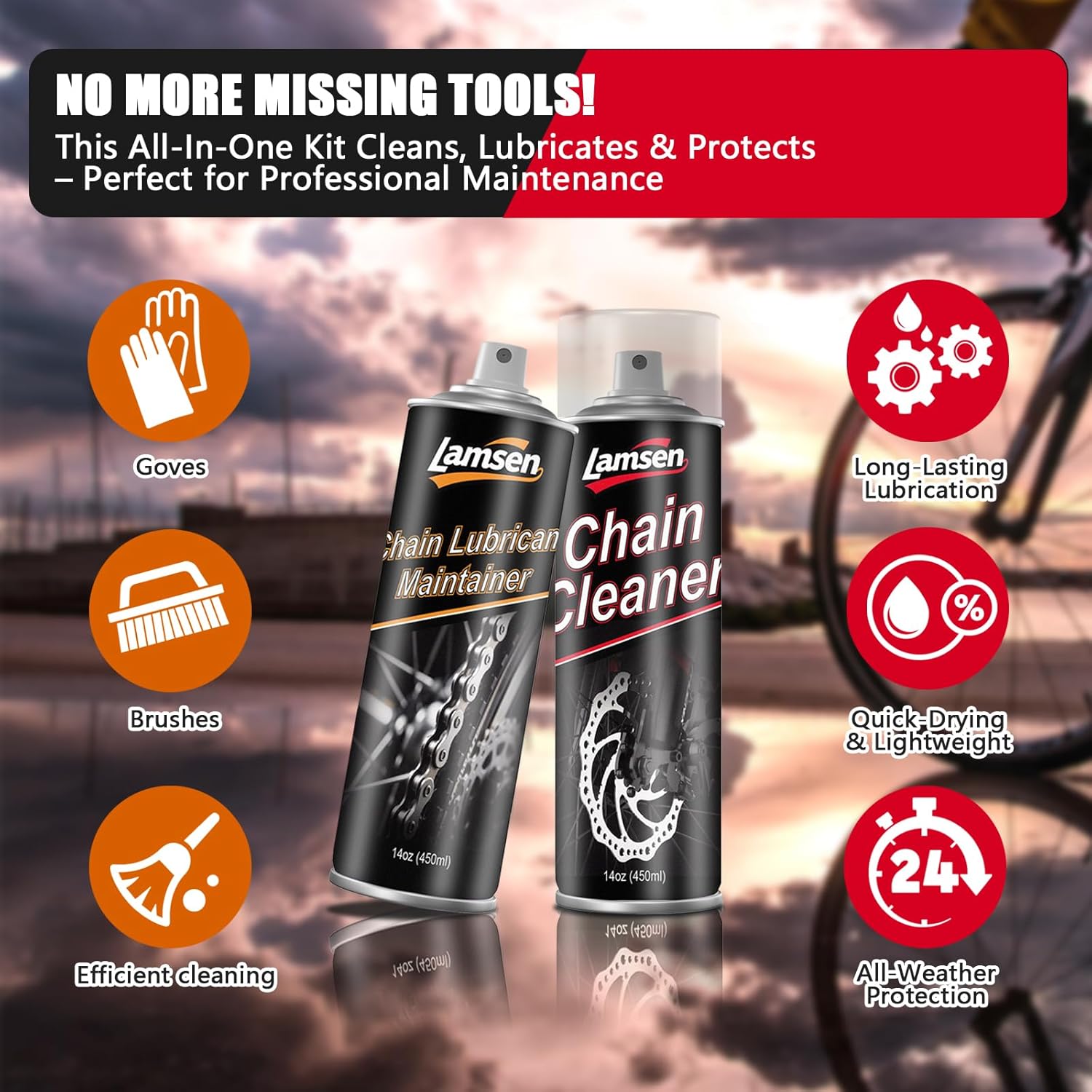 - Chain Maintenance One-Stop Kit: This kit combines chain cleaner, professional off-road chain lubricant, chain cleaning brush and protective gloves to create a complete chain maintenance ecosystem. From deep cleaning to long-lasting lubrication, there is no need to purchase additional tools, providing cyclists with an efficient and convenient chain maintenance experience.