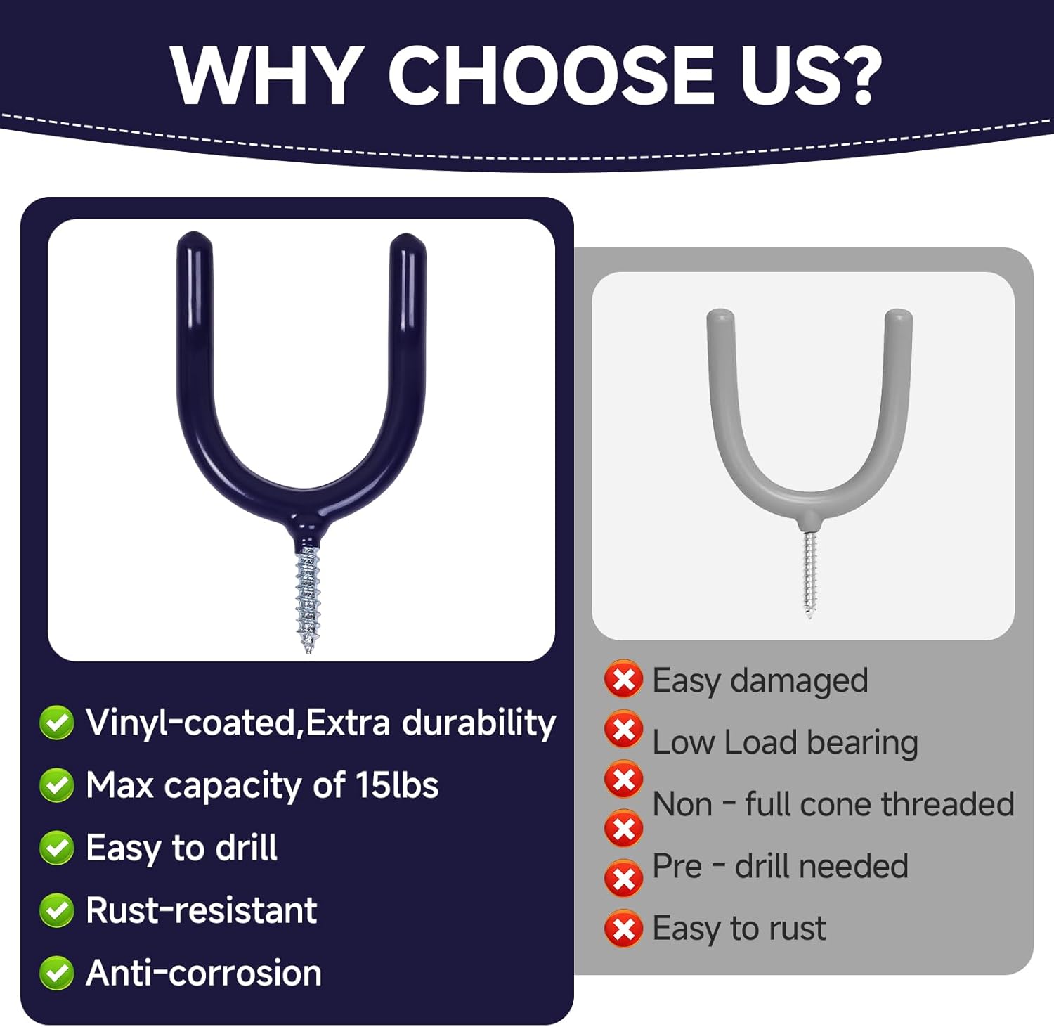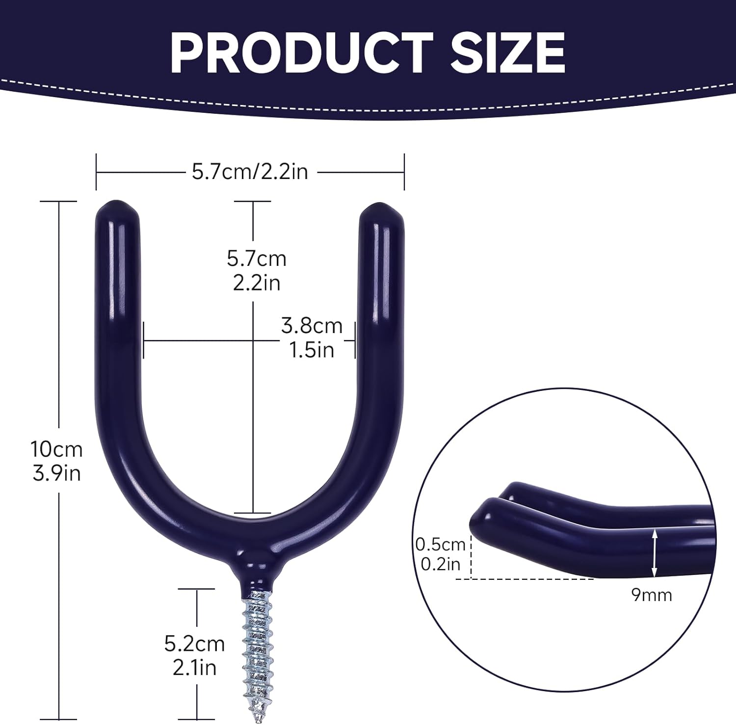 6 Pack Garage Storage System Steel U Hooks with Anti-Slip Coating Home Improvement and Organization Screw in Hooks Easy Wall Mounting Heavy Duty Bike and Ladder (Blue, 6 Pack)