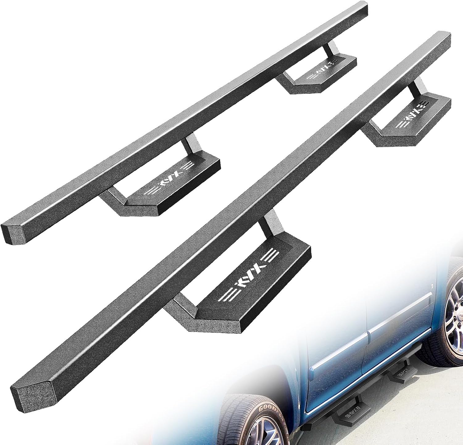 - 【WIDE DROP STEP】Exclusive design provides an extraordinary appearance for your vehicle and drop off making KYX step bars easier to enter and exit. Durable non-slip steps provide more protection. Looked clean yet aggressive.
