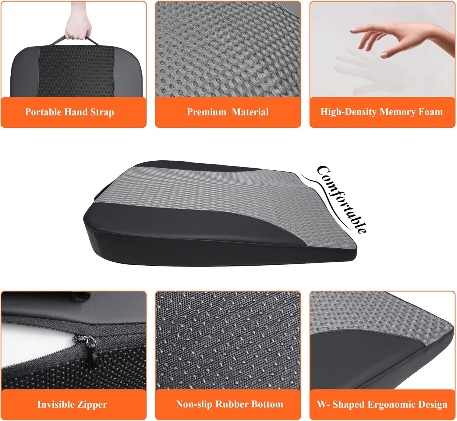 - Ergonomic Car Cushion - Our seat cushion for car seat driver provides maximum support and comfort for your back and hips. Besides, our cushion could help form a correct posture to relieve fatigue or pain caused by sitting too long. The W-shaped seat cushion for car can closely fit the curve of your legs for comfortable driving