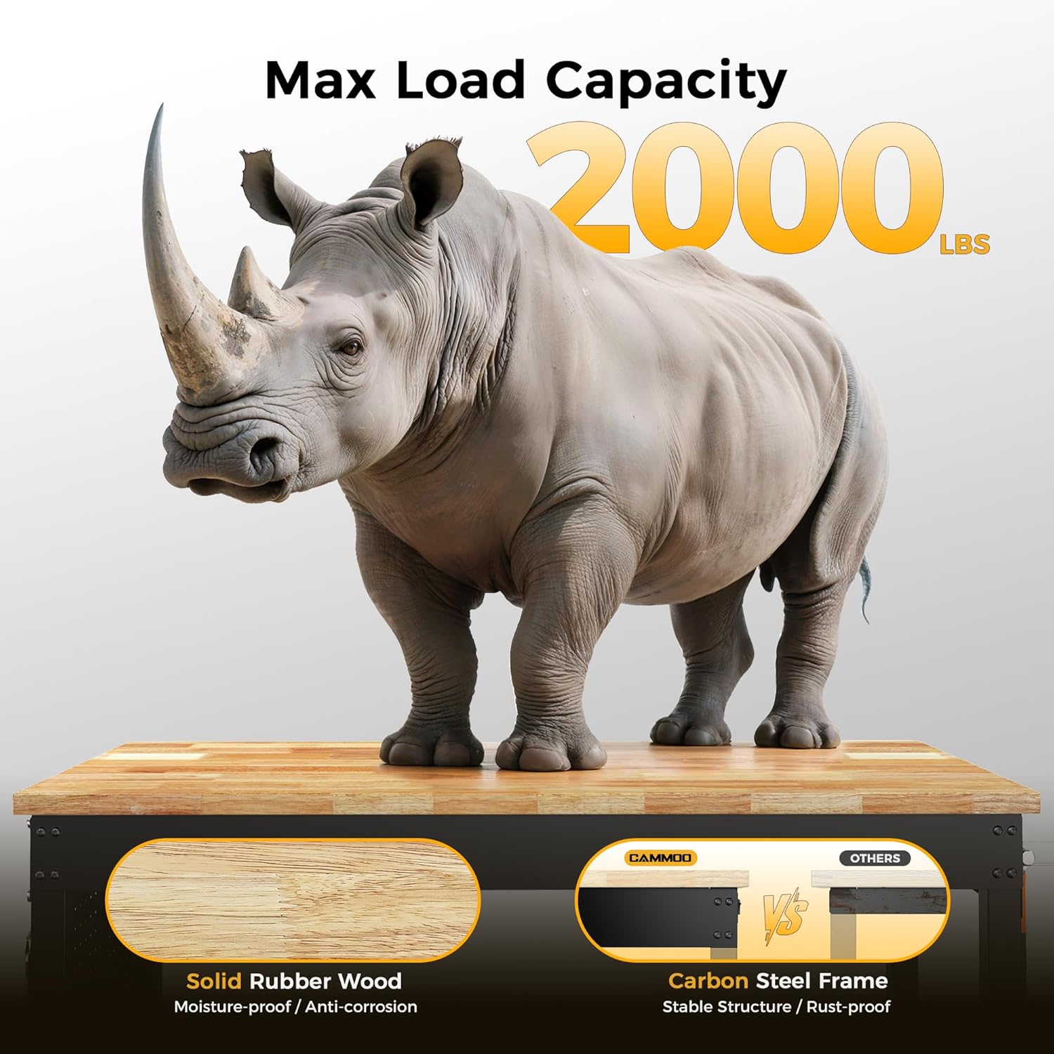 - Stable Structure: Tabletops made of rubber wood have a long lifespan and are environmentally beneficial. Premium carbon steel adjustable glides that can sustain heavy-duty tasks with a maximum load capacity of 2,000 pounds offer stability.