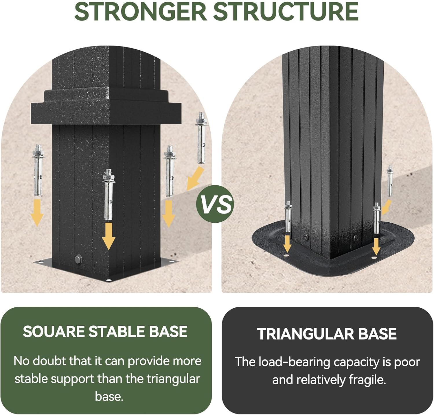 - Square Aluminum Foundation: Boasting the square rust resistant aluminum base, the hardtop gazebo offers superior stability and durability. With expansion bolts installed, it can support a maximum snow loading depth of 7 inches