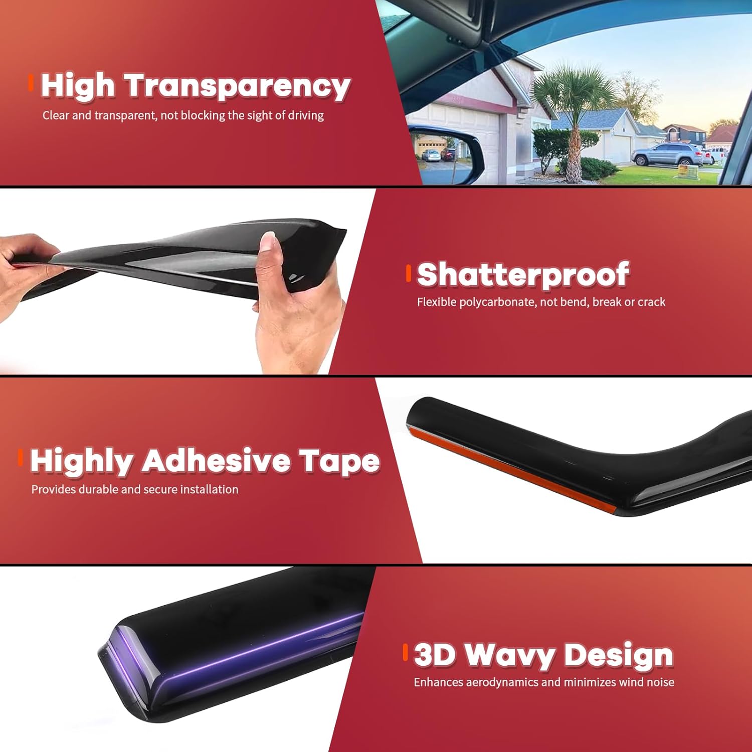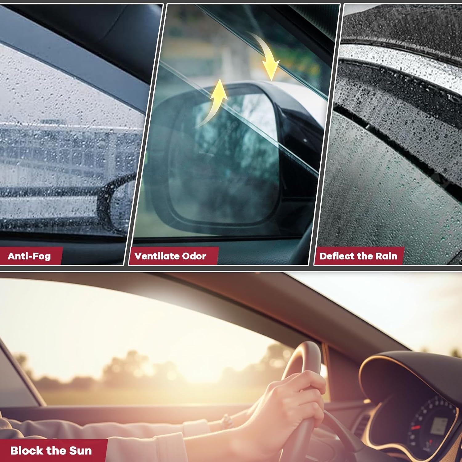 - 【Improved Ventilation and Air Flow】Allows fresh air to circulate through open windows while keeping the rain out or reduces heat. Reduce mirror and window fogging; reduce sun glare through side window. Dark Smoke translucent color will not obstruct the driver's view while driving