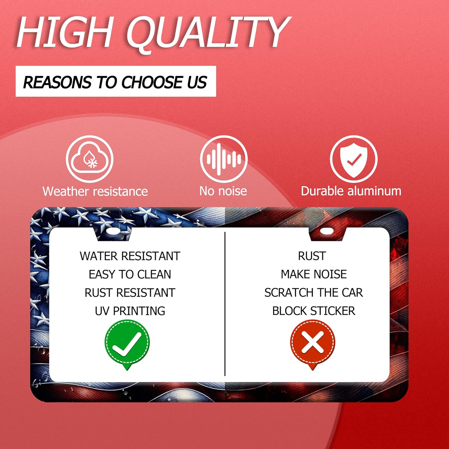 Vintage American Flag License Plate Frame Patriotic License Plate Holder Cars Decoration Funny Auto Accessories for Men Women 6x12 Inch