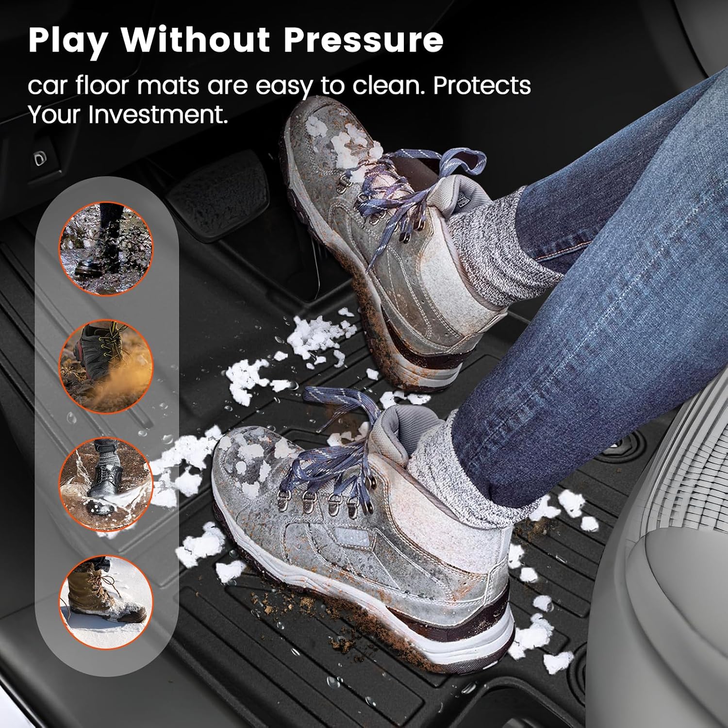 - "【All-Weather Protection】 100% Waterproof TPE material prevents spills, mud, and snow from damaging your car's interior. Keep your car clean.Deep grooves trap dirt/liquid better than generic mats.Perfect for everyday drives, pet transport, family trips, and off-road excursions."