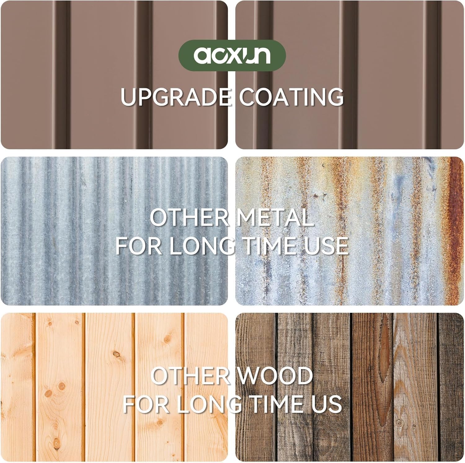 Aoxun 10 x 12FT Outdoor Storage Shed with Double Hinged Large Door Utility Garden Shed with Lockable Door & Sloped Roof Metal Sheds Outdoor Storage for Garden, Backyard, Patio and Backyard, Brown