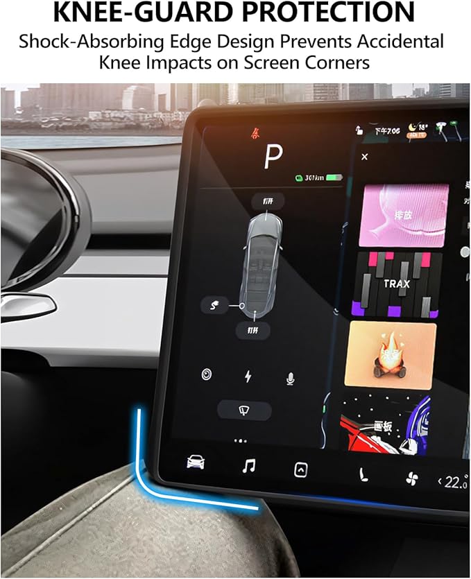 - KNEE-GUARD PROTECTION: In tight cabin spaces, sharp screen corners cause accidental knee impacts, tesla interior silicone decorations soft yet durable silicone material cushions 90% of impact force, reduces costly screen damage and knee pain
