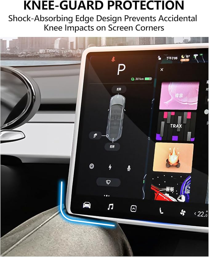 - KNEE-GUARD PROTECTION: In tight cabin spaces, sharp screen corners cause accidental knee impacts, tesla interior silicone decorations soft yet durable silicone material cushions 90% of impact force, reduces costly screen damage and knee pain