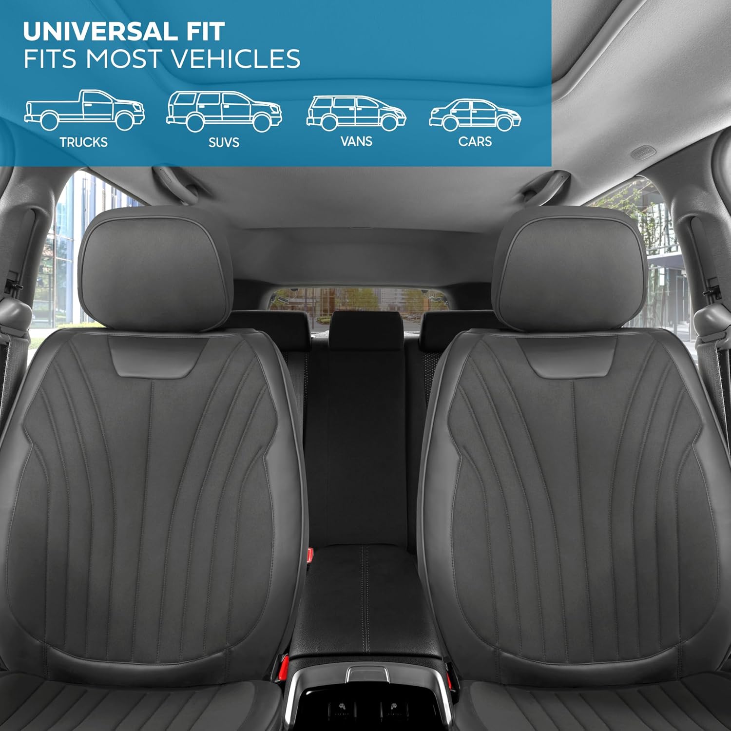 Elite Edition Faux Leather & Suede Seat Covers for Cars, Trucks, & SUV - 2 Charcoal Car Seat Covers for Front Seats - Universal Fit Car Accessories Automotive Interior Protector for Cars